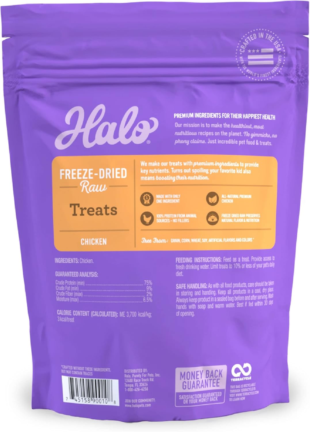 - Made with 100% protein from animals: One 2.2-oz pouch of Halo Freeze Dried Treats is packed with freeze dried raw all-natural, premium chicken