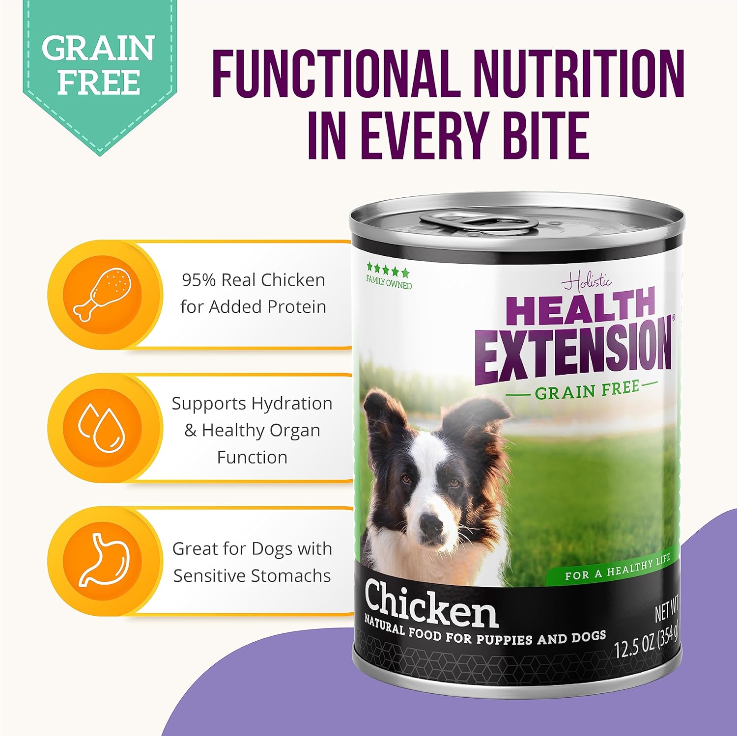 Health Extension 95% Chicken Entrée Wet Dog Food Grain-Free – 5.5 oz – Protein-Rich Formula, Hydration Support, Ideal for Sensitive Stomachs (Case of 24 Cans)