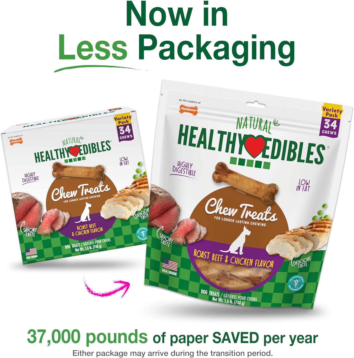 Nylabone Healthy Edibles Natural Dog Chews Long Lasting Chew Treats for Dogs, Roast Beef & Chicken Flavor, X-Small/Petite (34 Count)