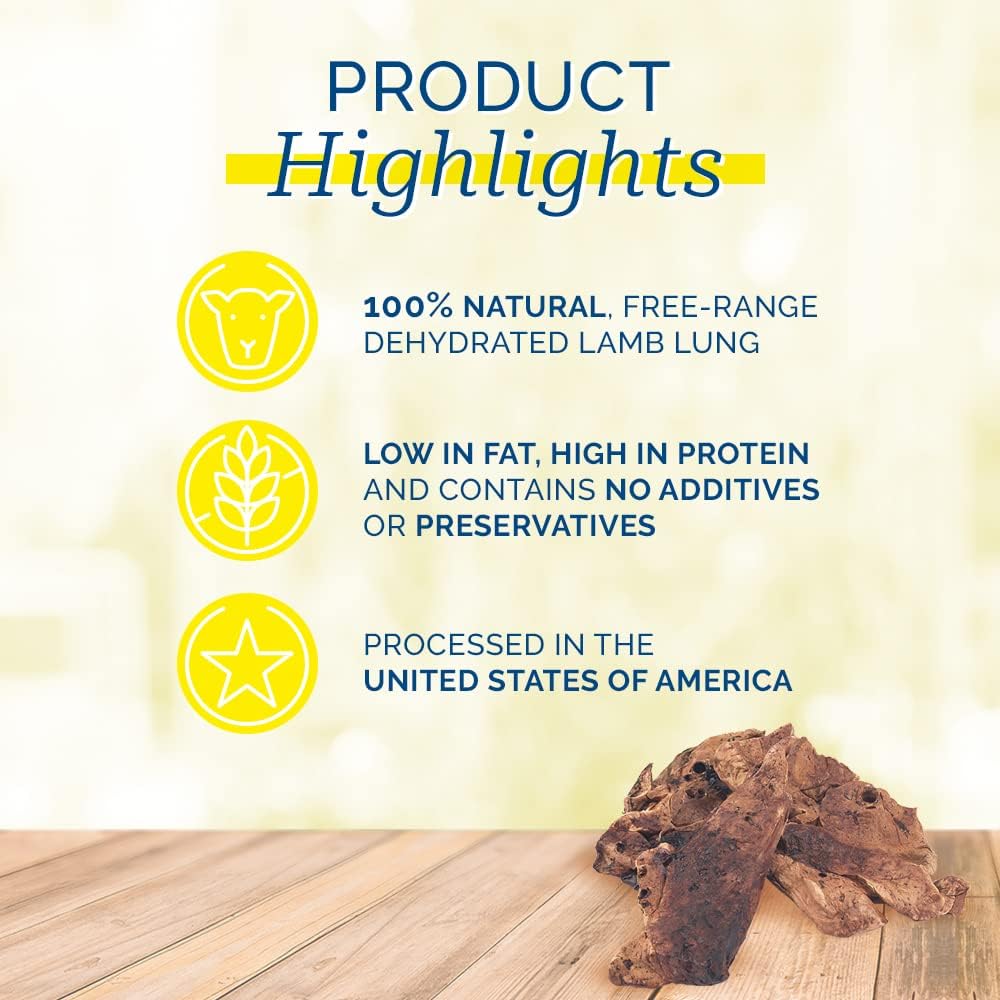 - 100% natural free-range dehydrated lamb lung dog treat, processed in the USA
