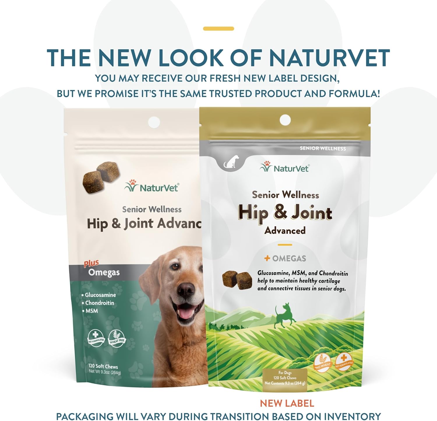 NaturVet – Senior Wellness Hip & Joint Advanced Plus Omegas | Help Support Your Pet’s Healthy Hip & Joint Function | Supports Joints, Cartilage & Connective Tissues | 120 Soft Chews