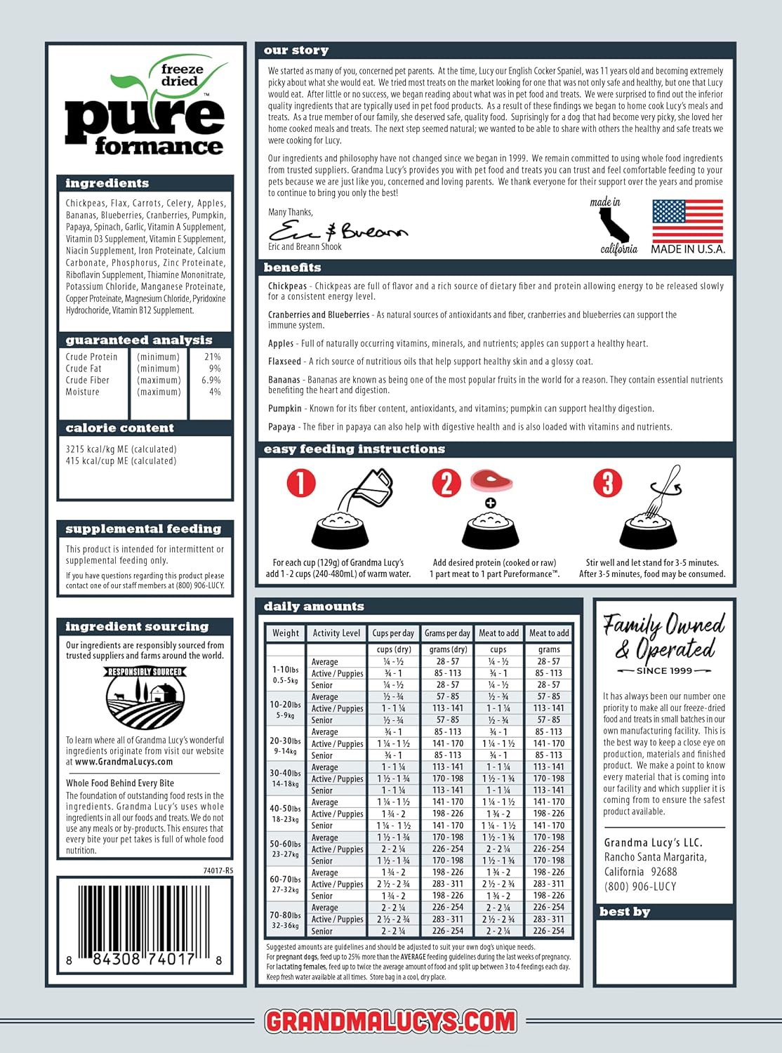 Grandma Lucy's PUREformance Pre-Mix Dog Food, Grain Free and Freeze-Dried - 3Lb Bag