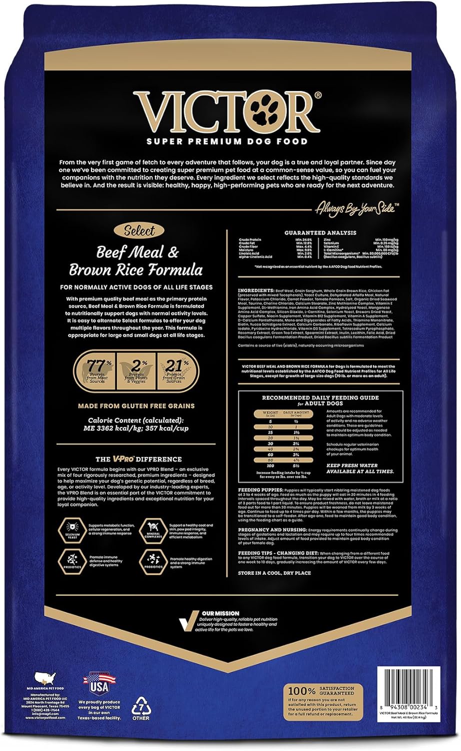 - MADE IN THE USA: We proudly produce every bag of VICTOR kibble in our own Texas-based facility and do not waver in our commitment to high-quality nutrition. A majority of ingredients in our pet food come from ranches, farms and other trusted suppliers who are within a day’s drive of our East Texas plant