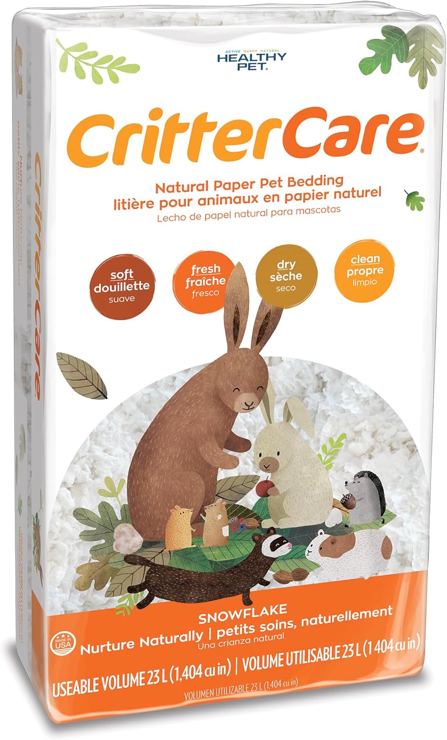 - SMALL ANIMAL PET BEDDING: CritterCare natural snowflake white paper pet bedding offers the very best in comfort while encouraging instinctive nesting and burrowing behaviors for your small pet.