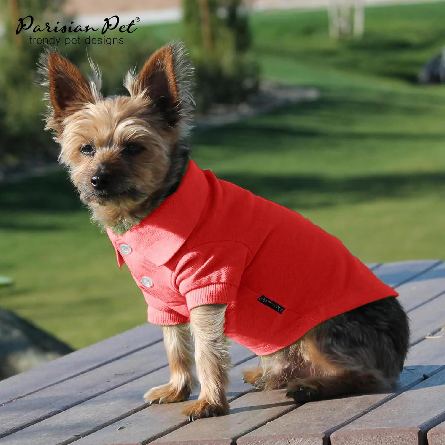 Parisian Pet Dog Polo Shirts - Breathable Dog Cotton Shirt - Solid Red Color Summer Pullover Dog Clothes - Button Up Collar Dog Polo Shirt for Small Dogs XXS