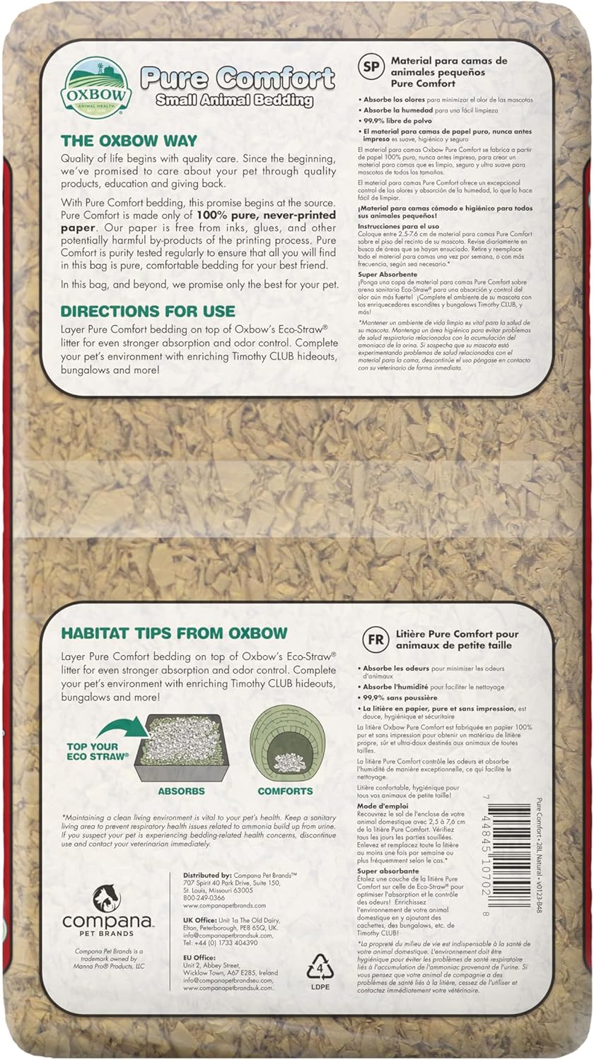 - PURE PAPER FOR SAFETY & COMFORT: Made from never-printed paper, Oxbow bedding is ultra-soft, hygienic, and free from inks or dyes; Perfect for rabbit litter boxes and guinea pig cages, it provides a cozy and safe habitat for your small pets