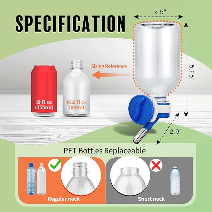 - 🐾 User-friendly Screw-on Bracket: Simple and Easy Installation. You Can Easily Snap the Water Bottle On or Off for Cleaning and Refilling Water.