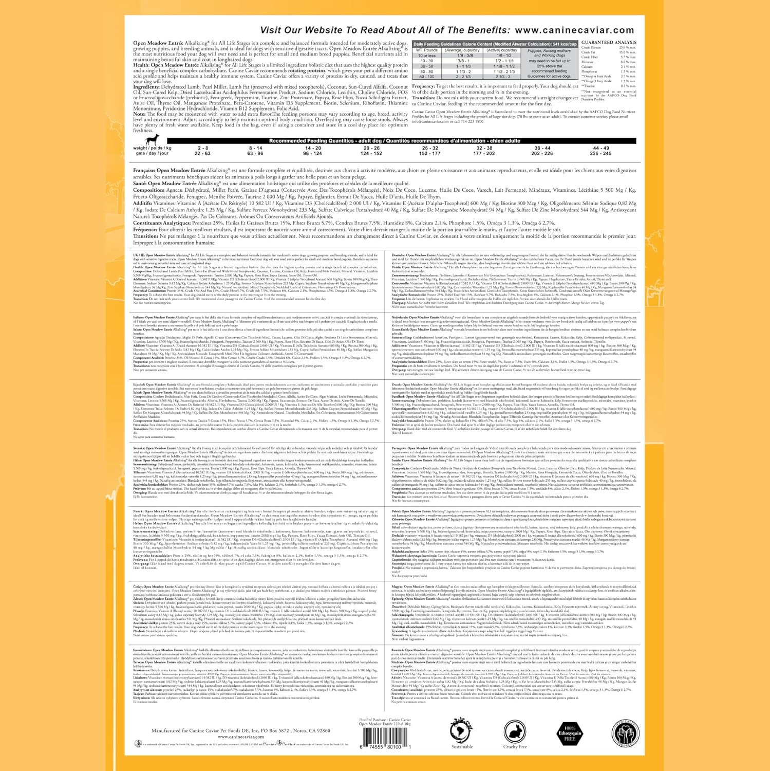 Canine Caviar - Open Meadow: Lamb & Pearl Millet Alkaline Dry Dog Food, Limited Ingredients, Gluten-Free, Based on Science & Research, Veterinary Alternative Diet (22 Pound Bag)