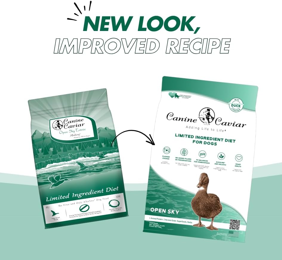 Canine Caviar - Open Sky: Duck & Teff Alkaline Dry Dog Food, Limited Ingredients, Gluten-Free, Based on Science & Research, Veterinary Alternative Diet (11 Pound Bag)