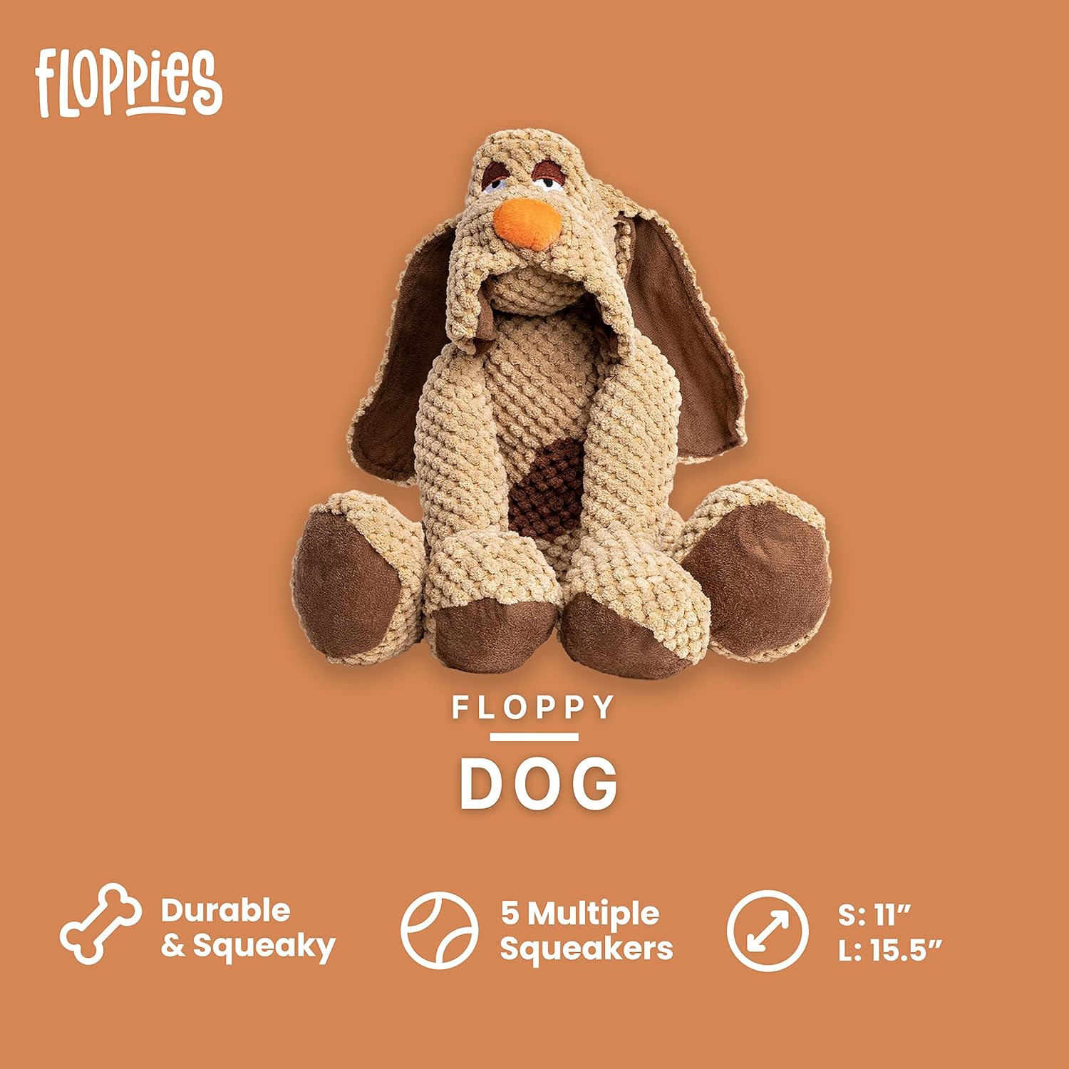 - DURABLE DOG TOYS: Give your small pup or senior dog a durable pet chew toy that is crafted from polyester fill and includes up to five squeakers when selecting from the collection of Fabdog dog floppies and pet stuffed toys.