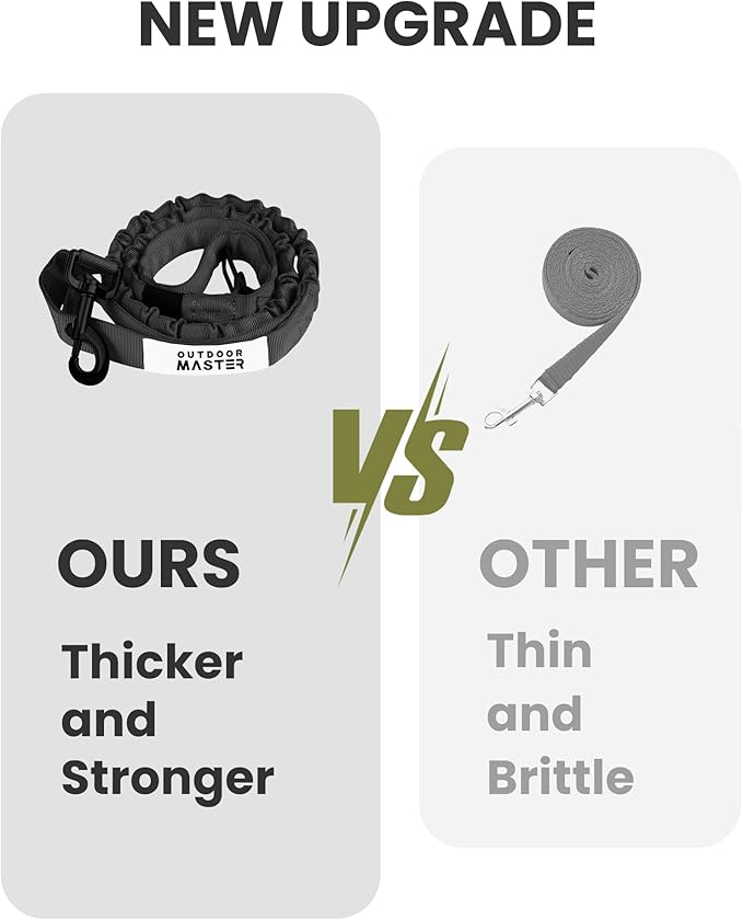 - Protecting Your Arms and Back - Compared to traditional fixed-length leashes, OutdoorMaster leashes for dogs with unique bungee design , reducing impact and protecting your arms and back. the elastic dog leash reduces the likelihood of tangling and twisting.It is easy to wash