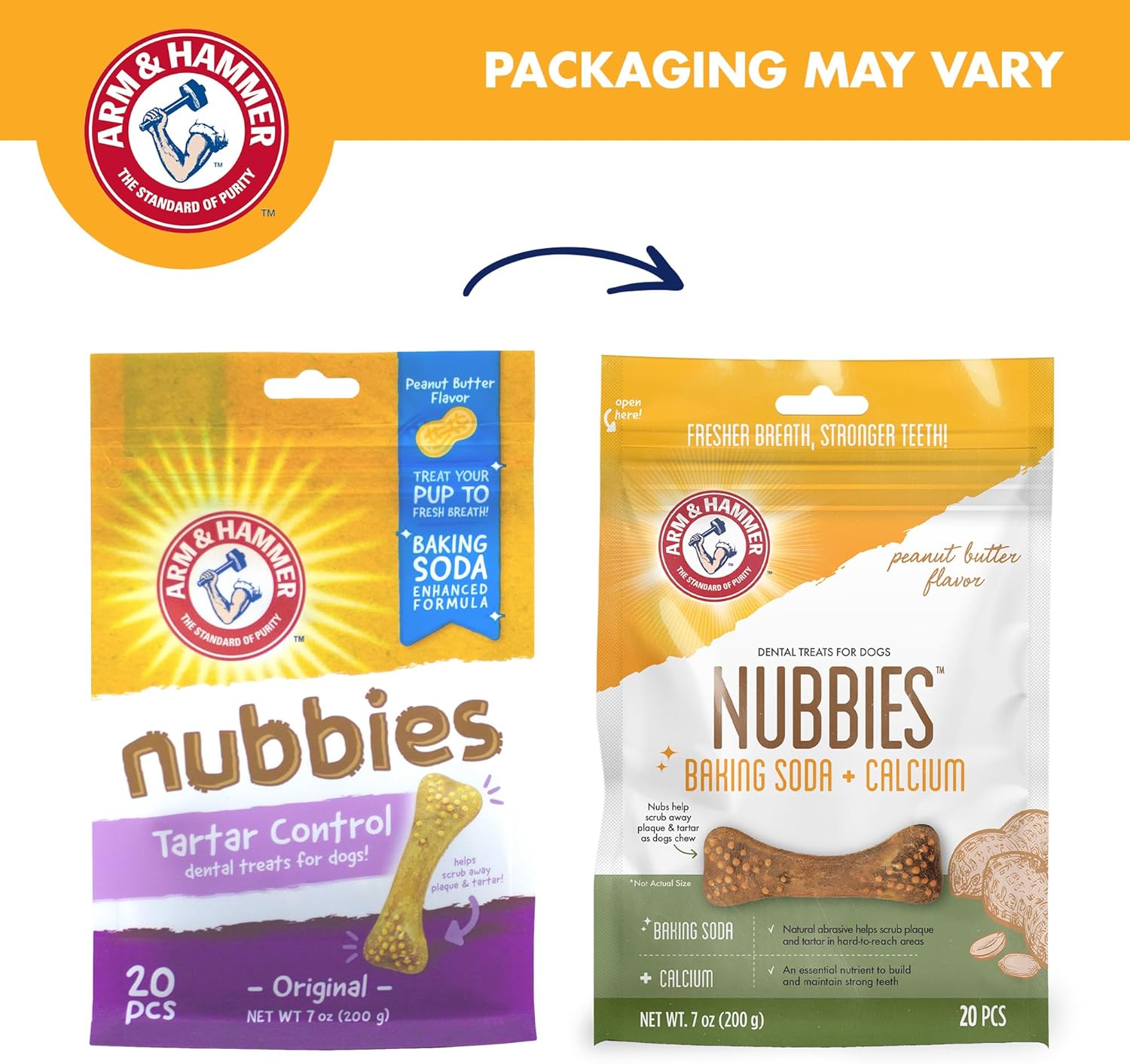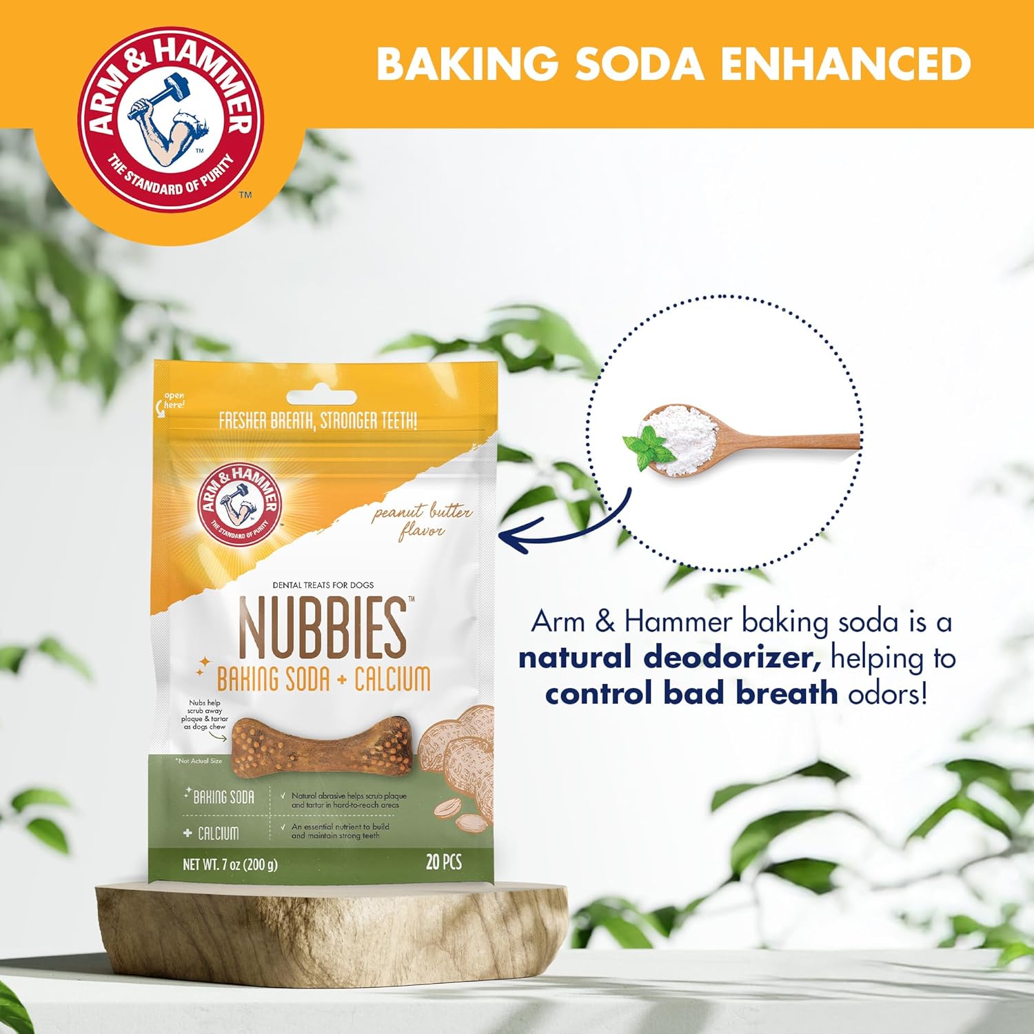 Arm & Hammer for Pets Nubbies Dental Treats for Dogs with Baking Soda and Calcium, Treat Chews Help Fight Bad Breath, Plaque & Tartar without Brushing, Peanut Butter, 20 Pcs (Packaging may vary)