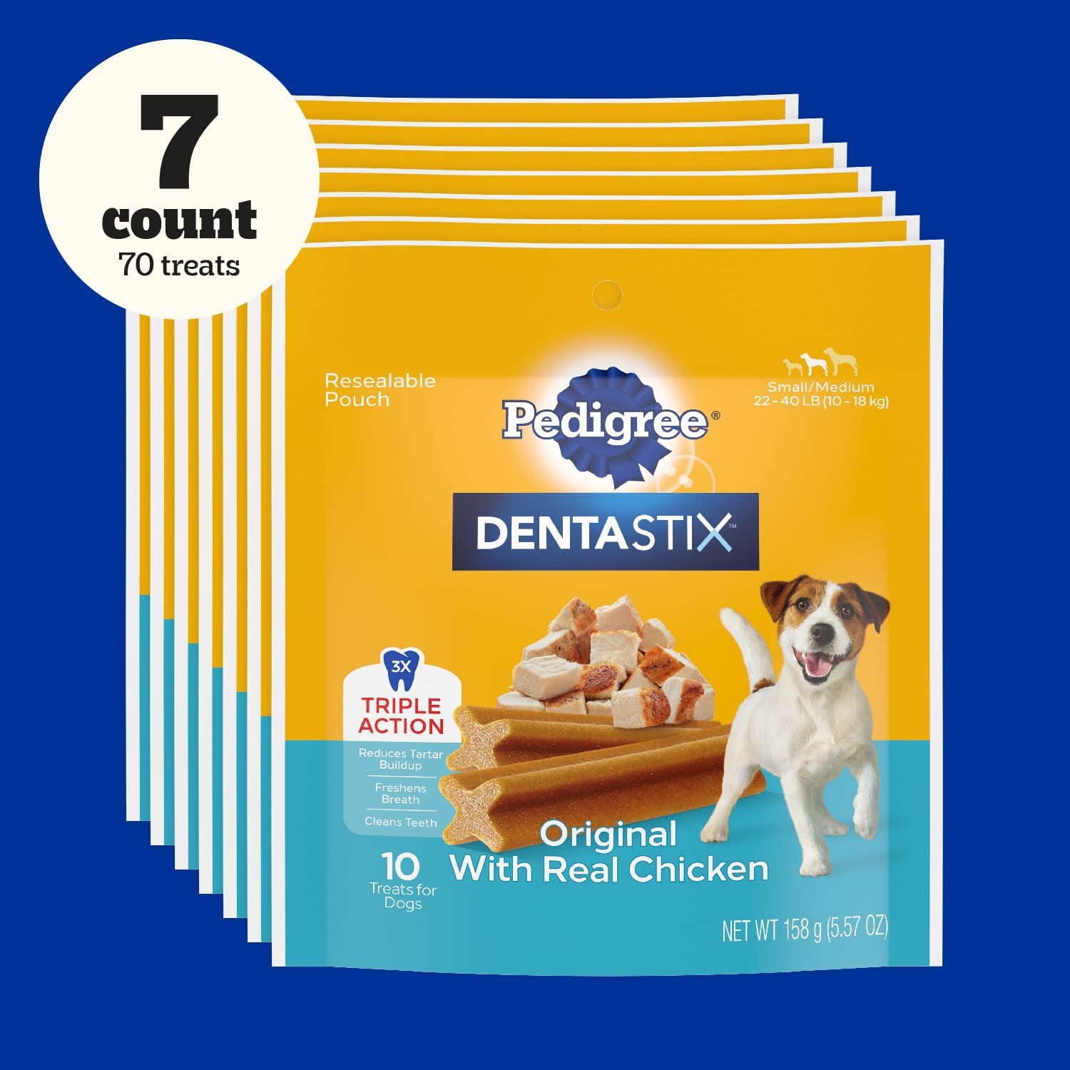 - Contains Seven 5.57-Oz., 10-Count Packs Of Pedigree Dentastix Original Small/Medium Treats For Dogs