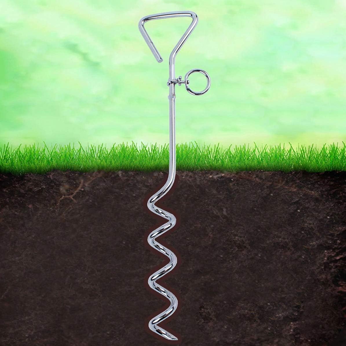 - Heavy-duty Dog Tie Out Cable is made from high-quality steel, is 18 inches long and features a spiral, corkscrew design. Just screw it deep into solid ground for a secure hold.