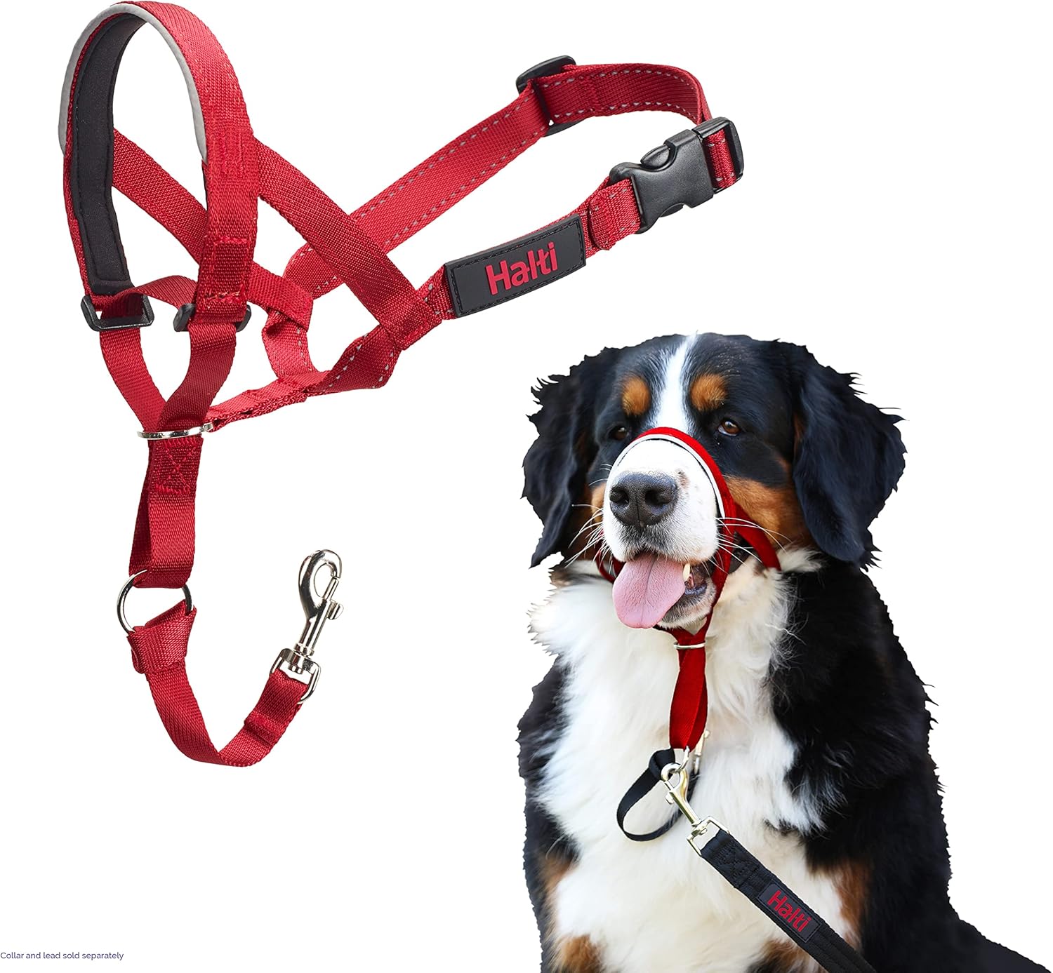 HALTI Headcollar - to Stop Your Dog Pulling on The Leash. Adjustable, Reflective and Lightweight, with Padded Nose Band. Dog Training Anti-Pull Collar for Large Dogs (Size 4, Red)
