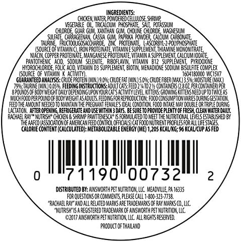 Rachael Ray Nutrish Natural Wet Cat Food, Chicken & Shrimp Pawttenesca Recipe, 2.8 Ounce Cup (Pack of 12), Grain Free