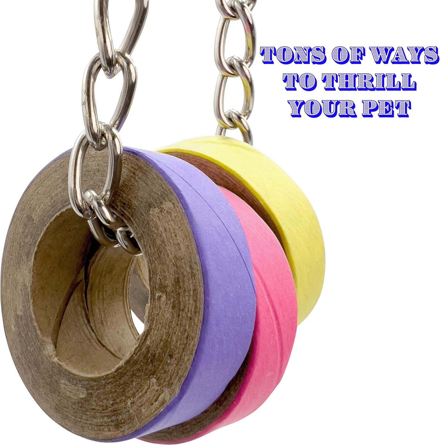 8001 1.75 Pk15 Bird Chew Donut 1.75 Inch by M&M - Compressed Cardboard Shreddable Bagels, Lots of Paper Layers, Brightly Colored Outer Strip, Parrotlet Quaker Conure African Grey
