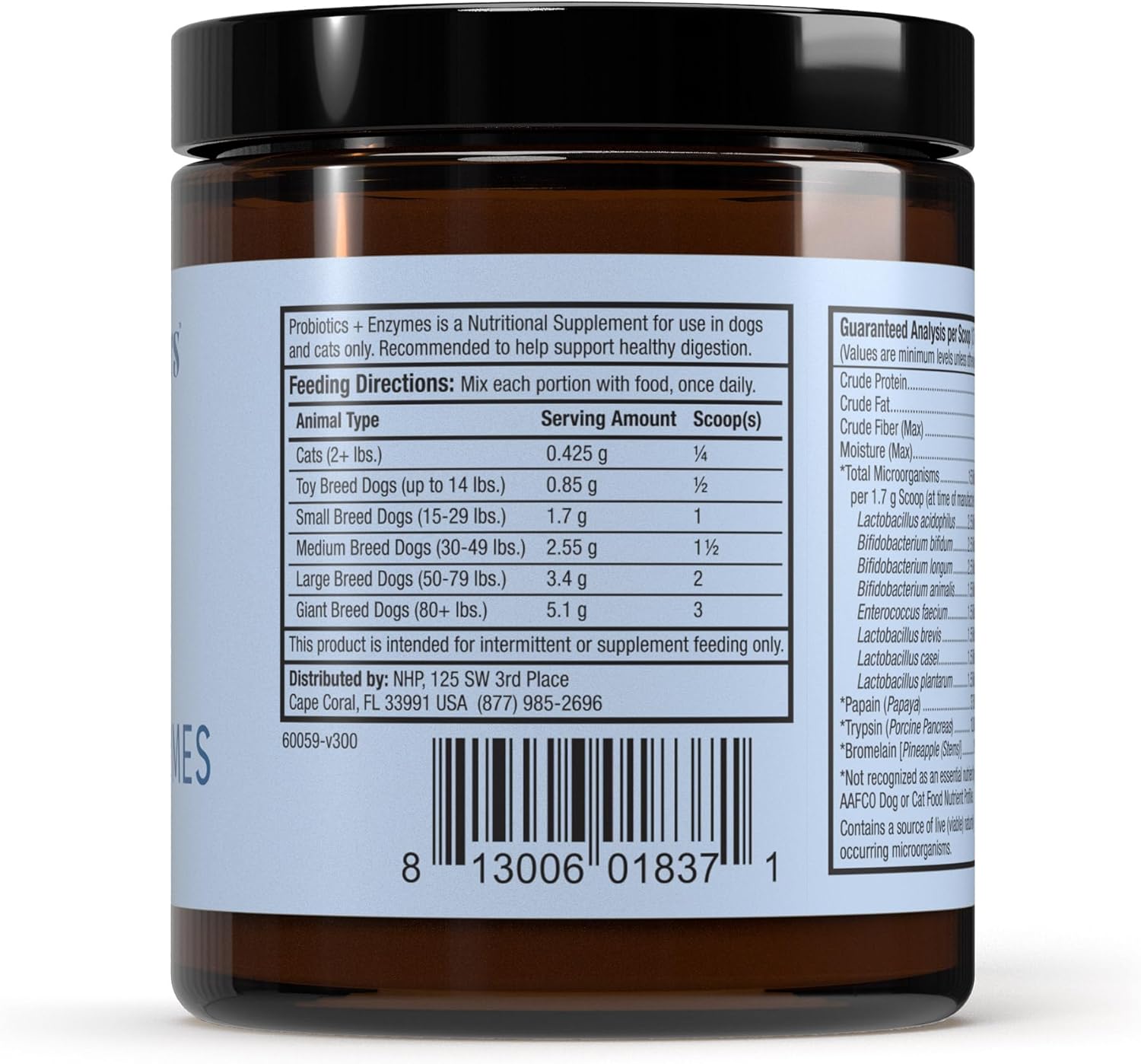 Bark & Whiskers Probiotics + Enzymes - Supports Digestive Health & Immune System - Probiotic Supplement for Cats & Dogs - 60 Scoops