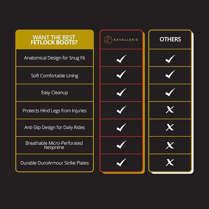 • SHOCK & IMPACT ABSORBENT - Performance and protection rolled into one! Kavallerie’s classic fetlock horse boots is made to adjust for tight turns while keeping your horse’s hind legs safe from knocks, brushing and abrasion. Its flexible outer shell is comfortable yet durable, perfect for use anytime.