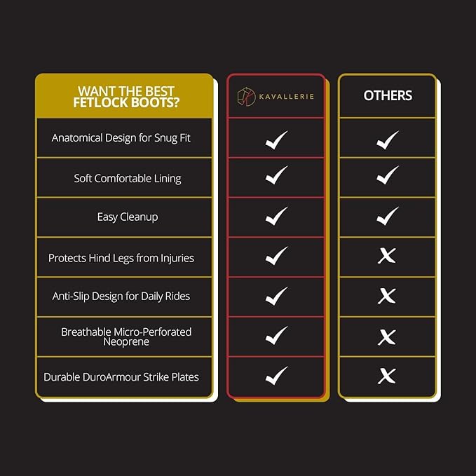 - EASY TO CLEAN & COMFORTABLE - Our Kavallerie classic fetlocks is crafted for your horse’s comfort. It’s lightweight and gives breathing room to your horse’s skin and legs when worn. Even better, cleaning is easy. A quick rinse or hose down after each use gets the job done. You can also hand or machine wash at less than 30 degree C.