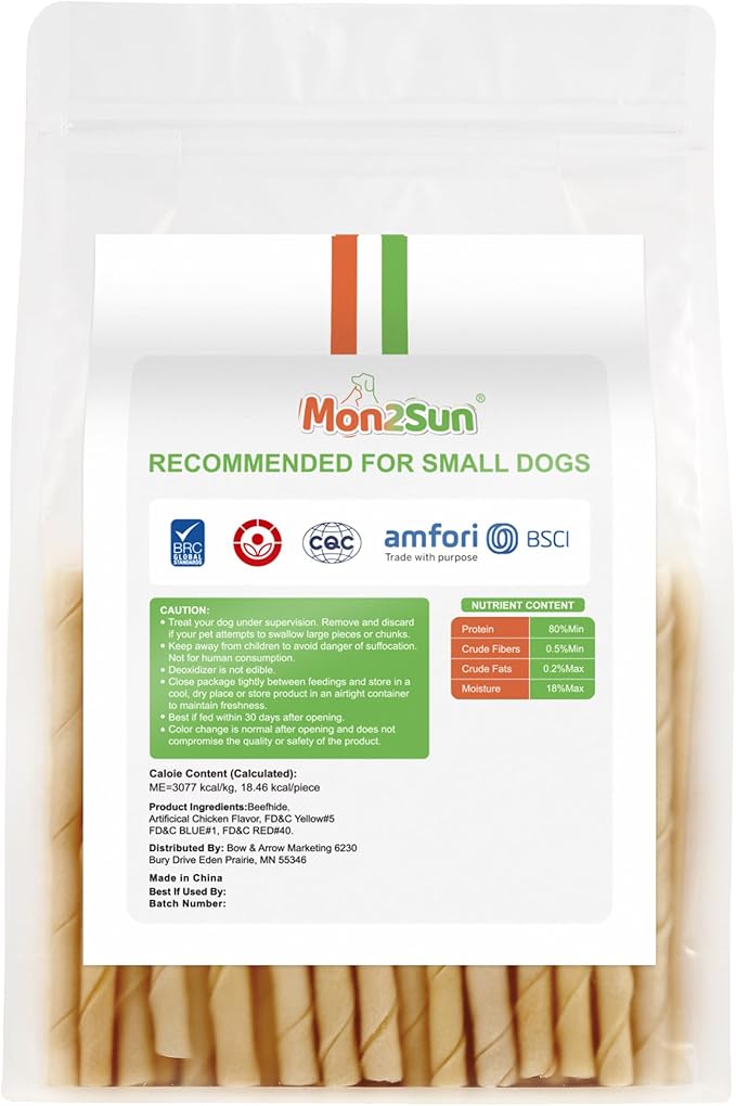 MON2SUN Dog Rawhide Twist Sticks Chicken Flavor 5 Inch Thin Sticks Rawhide Chews Treats for Puppy and Small Dogs 60 Count