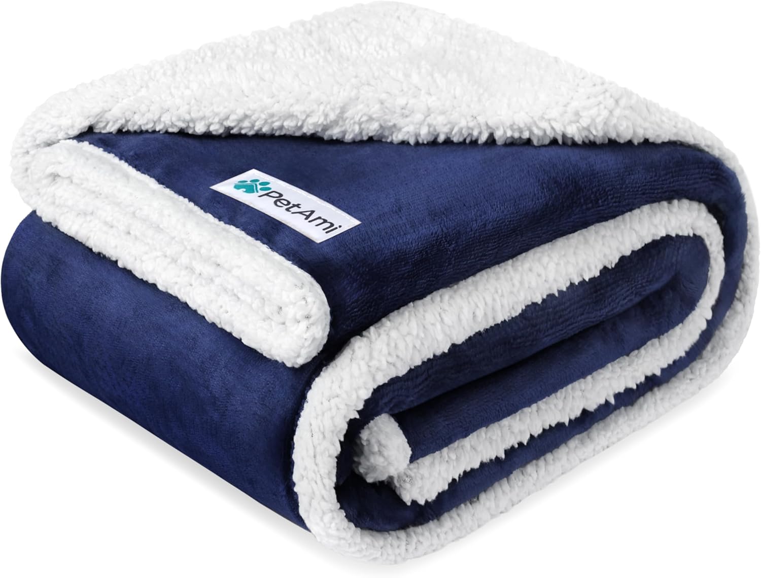 PetAmi Waterproof Dog Blanket for Medium Large Dog Puppy Cat Throw for Couch Cover Leakproof Protection, Sherpa Fleece, Reversible Soft Washable 60x40 Navy Blue
