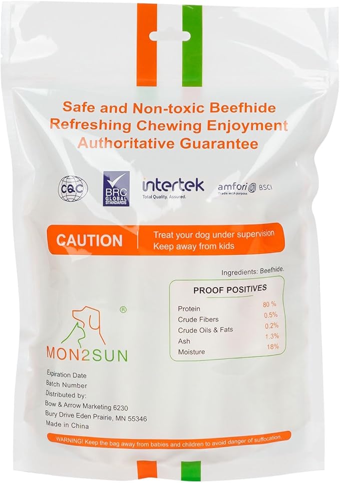MON2SUN Dog Rawhide Rolls Twist Sticks 6.5 Inch Natural Flavor Rawhide Chews 18 Count for Puppy and Small Dogs