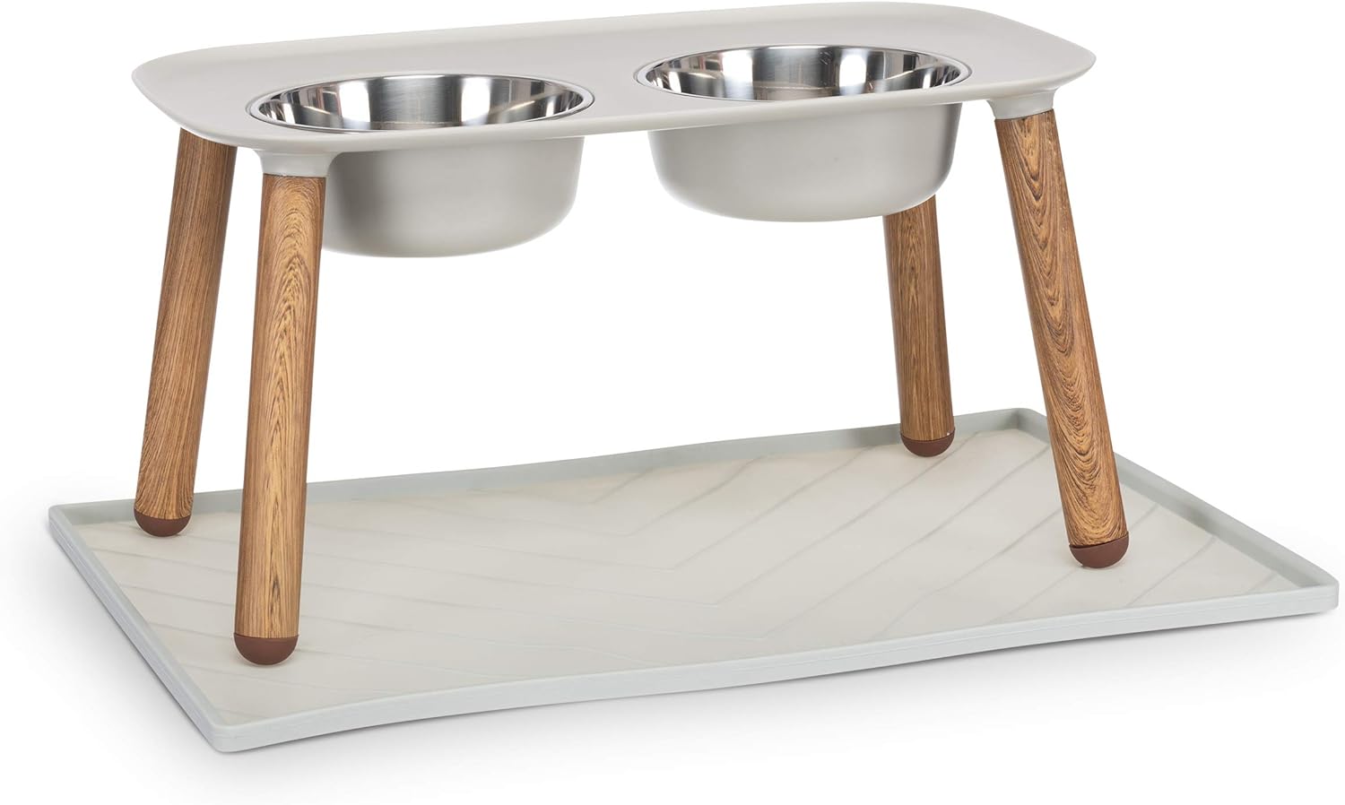 - WATERPROOF FEEDING MAT – The chevron ridge design will keep bowls slightly elevated and allow spills to evaporate. This silicone mat is easy to clean and prevents any mess from leaving the tray. Whether it’s water drips or drool, this mat is easy to wipe up or clean with warm water and soap. Dishwasher safe.