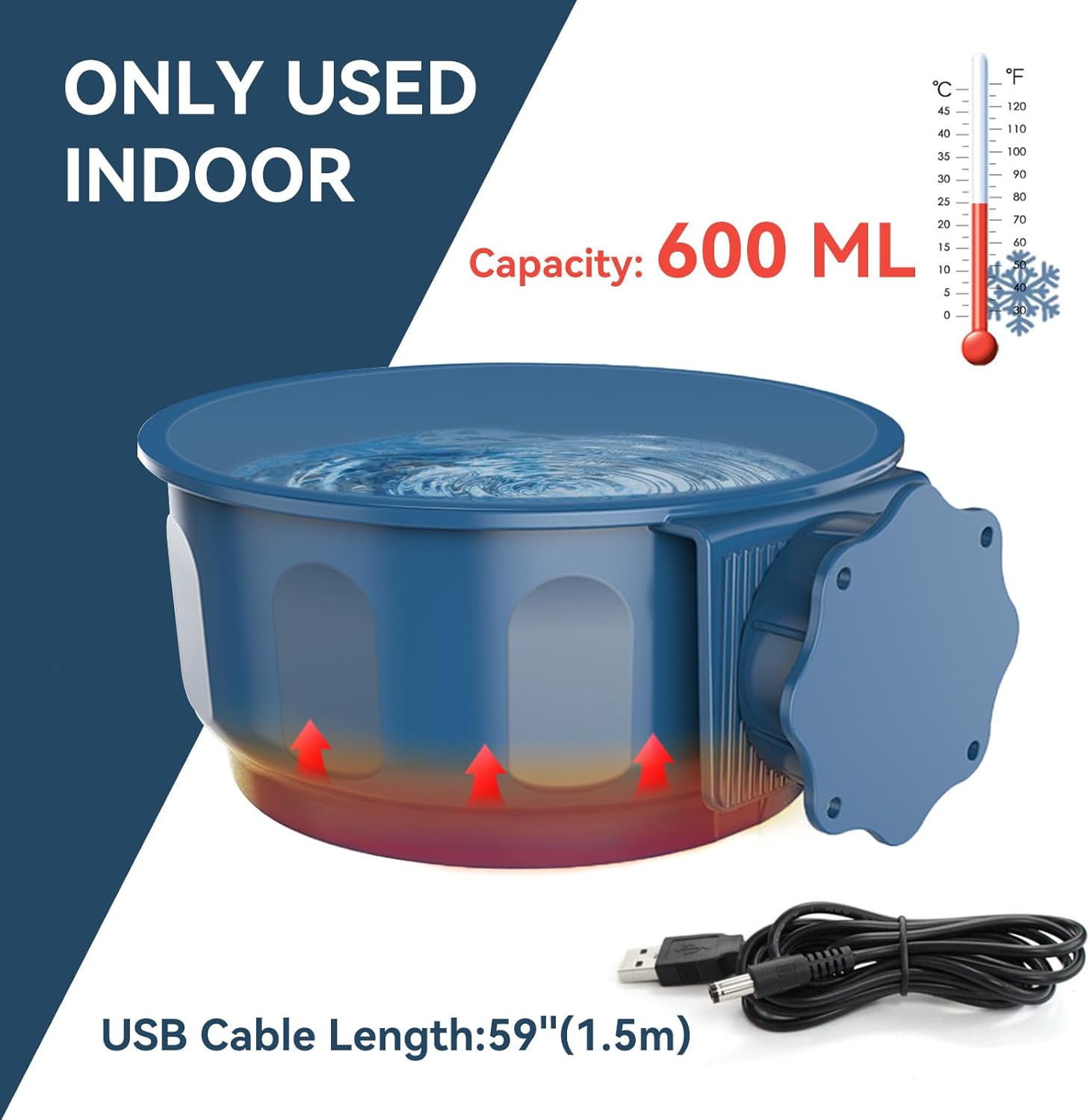 - WINTER DRINKING WATER: Cats, puppies, rabbits, chickens, birds or most animals drink room temperature water at around 25 ℃(77°F). Even if water temperature will be affected by atmospheric in winter, heater will maintain the water at a safe 25 ℃(77°F) or below, but not allow to used below -10 ℃(14°F) due to its low power(10W)