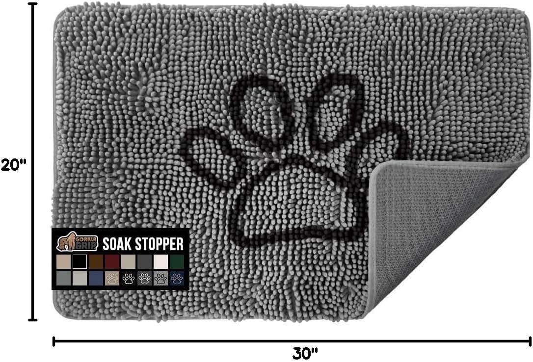 GORILLA GRIP Ultra Absorbent Grippy Doormat for Muddy Dog Paws, 30x20 Machine Washable Soakstopper Rugs Cleaner Floors, Bed Mat Dirty Dogs, Indoor Entrance Door Rug Pet Bed Mats Paw Gray