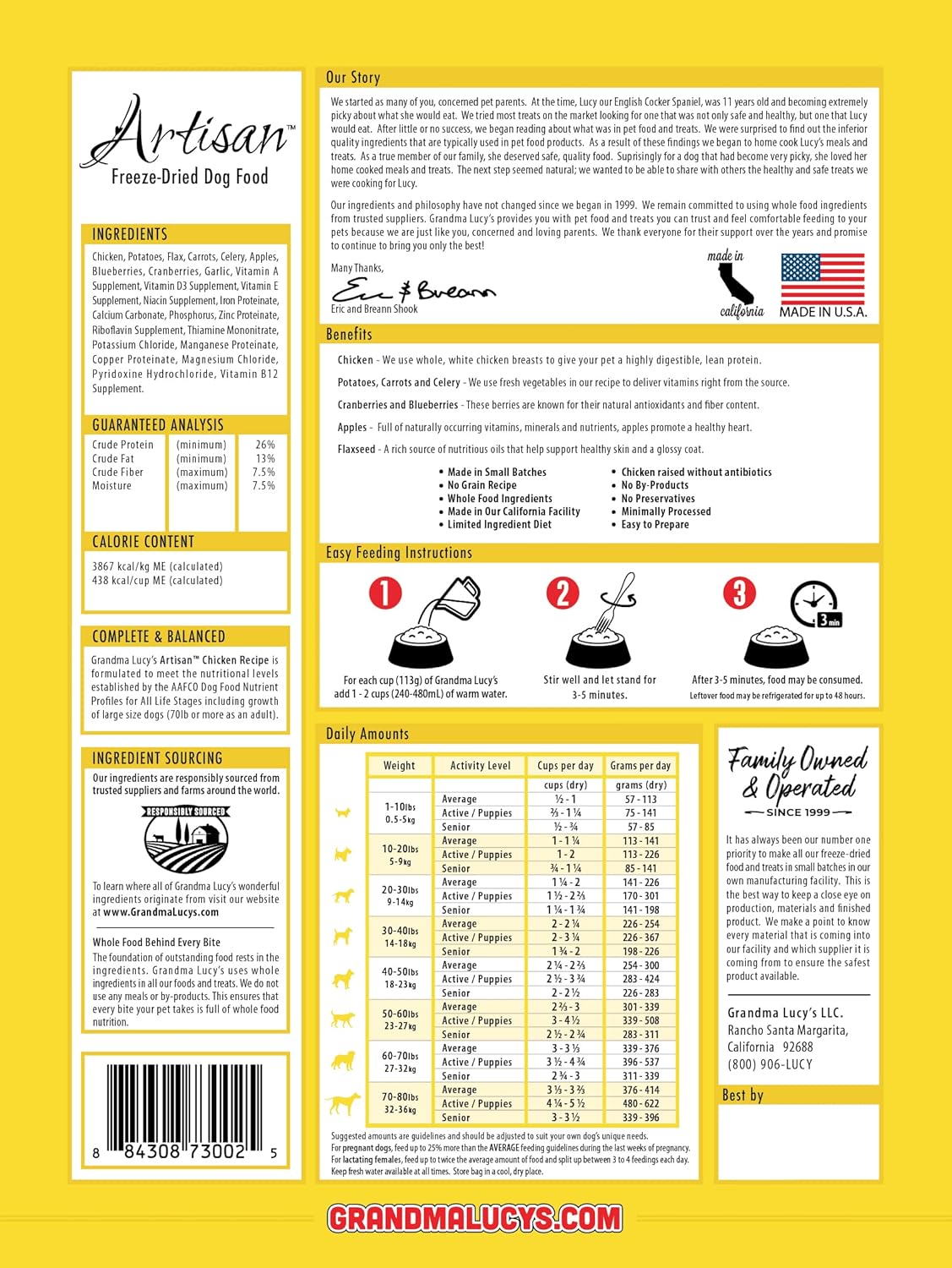 Grandma Lucy's Artisan Dog Food, Grain Free and Freeze-Dried - Artisan Chicken, 1Lb Bag