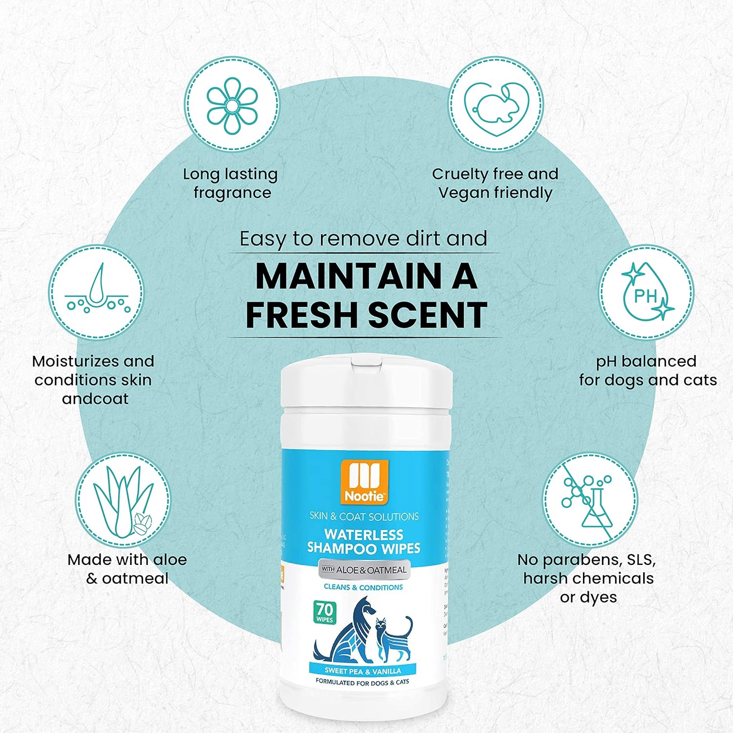 Nootie Waterless Shampoo Wipes for Dogs & Cats (70 Wipes, Sweet Pea & Vanilla)