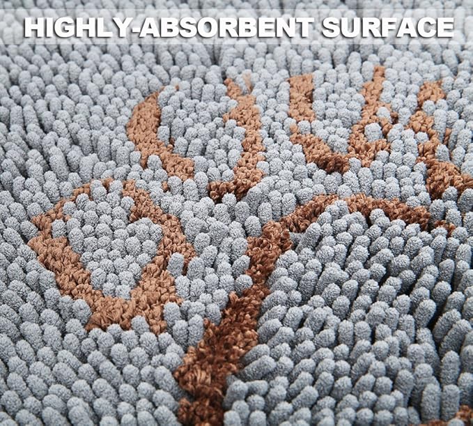 EXPAWLORER Dog Door Mat - Highly Absorbent Microfiber Dog Rug, Soft Chenille Non-Slip Large Pet Paw Cleaning Washable Mud Mat for Indoor Outdoor Floor, Grey