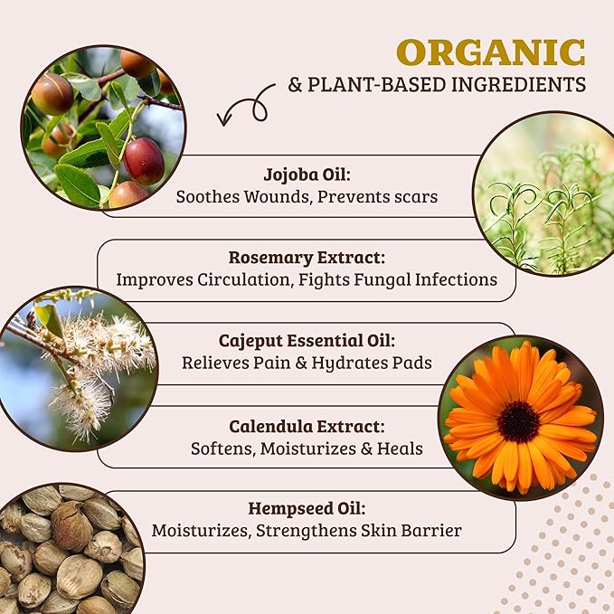 - RESTORES FLEXIBILITY & SOFTNESS TO PAWS – Deep emollients and botanical oils help revitalize hardened or calloused paw pads, improving suppleness, reducing stiffness, and promoting smoother, more resilient paws for active dogs.