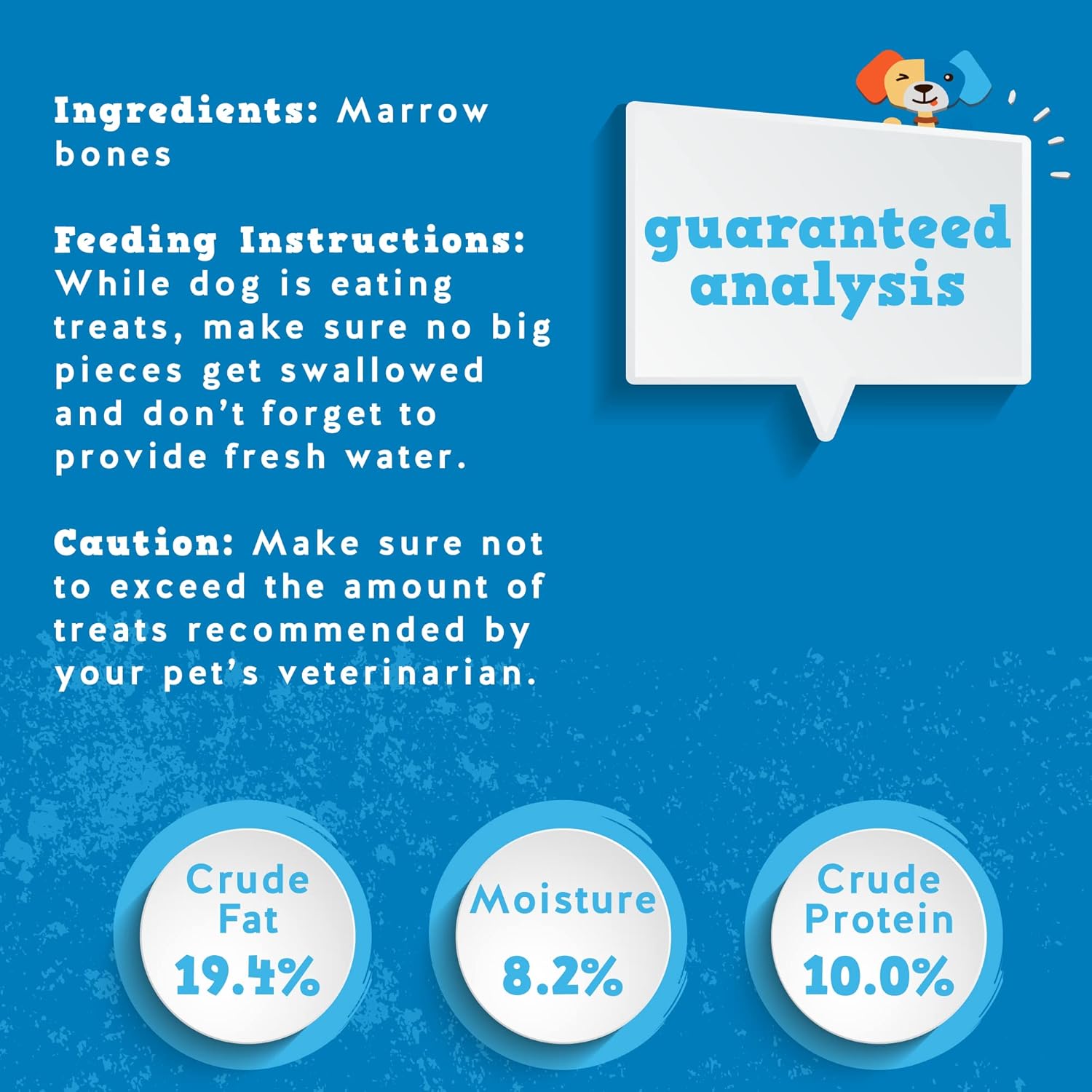 - NATURAL & HEALTHY– The marrow bones for dogs are full of essential Omega-3 fatty acids, vitamins and minerals (calcium, phosphorus, iron, zinc, selenium, magnesium and manganese). Each beef bone is filled with 100% natural bone marrow, without any fillers or additives.