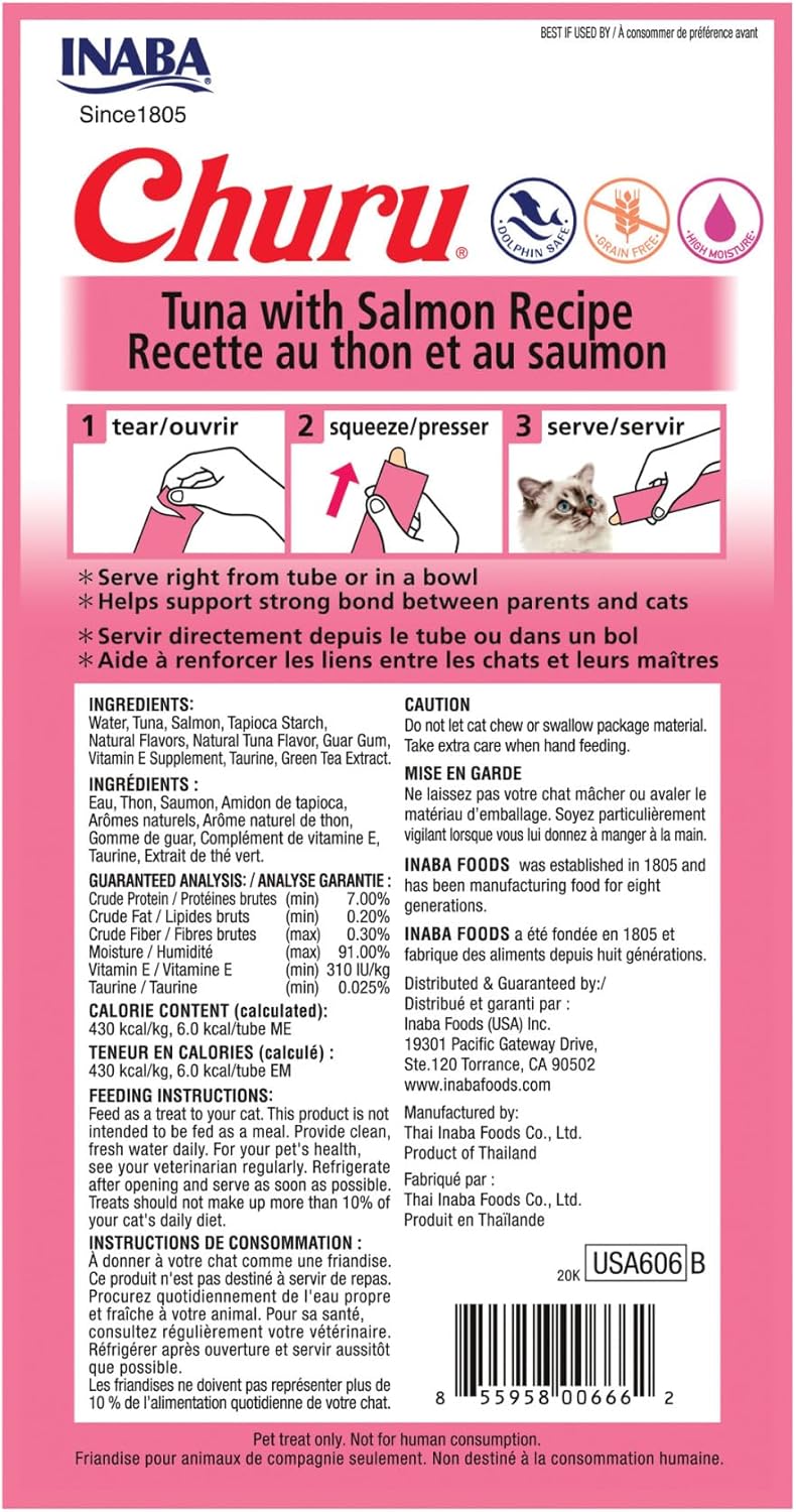 Churu Tuna with Salmon Recipe Lickable Creamy Purée Cat Treats 24 Tubes