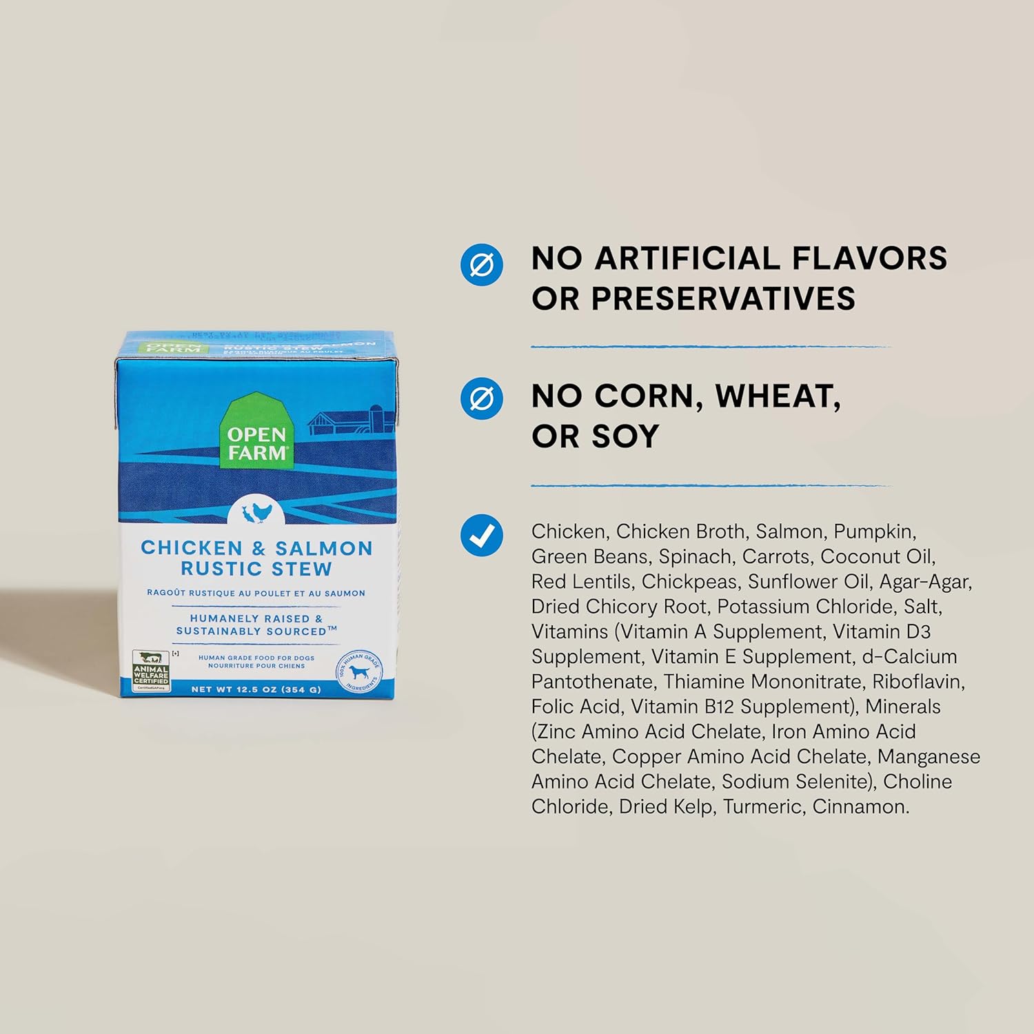 Open Farm Rustic Stews Wet Dog Food, Grain-Free, Complete & Balanced with Human-Grade Ingredients, Humanely-Raised Meat & Bone Broth, Chicken & Salmon Recipe, 12.5oz Packs (Case of 12)