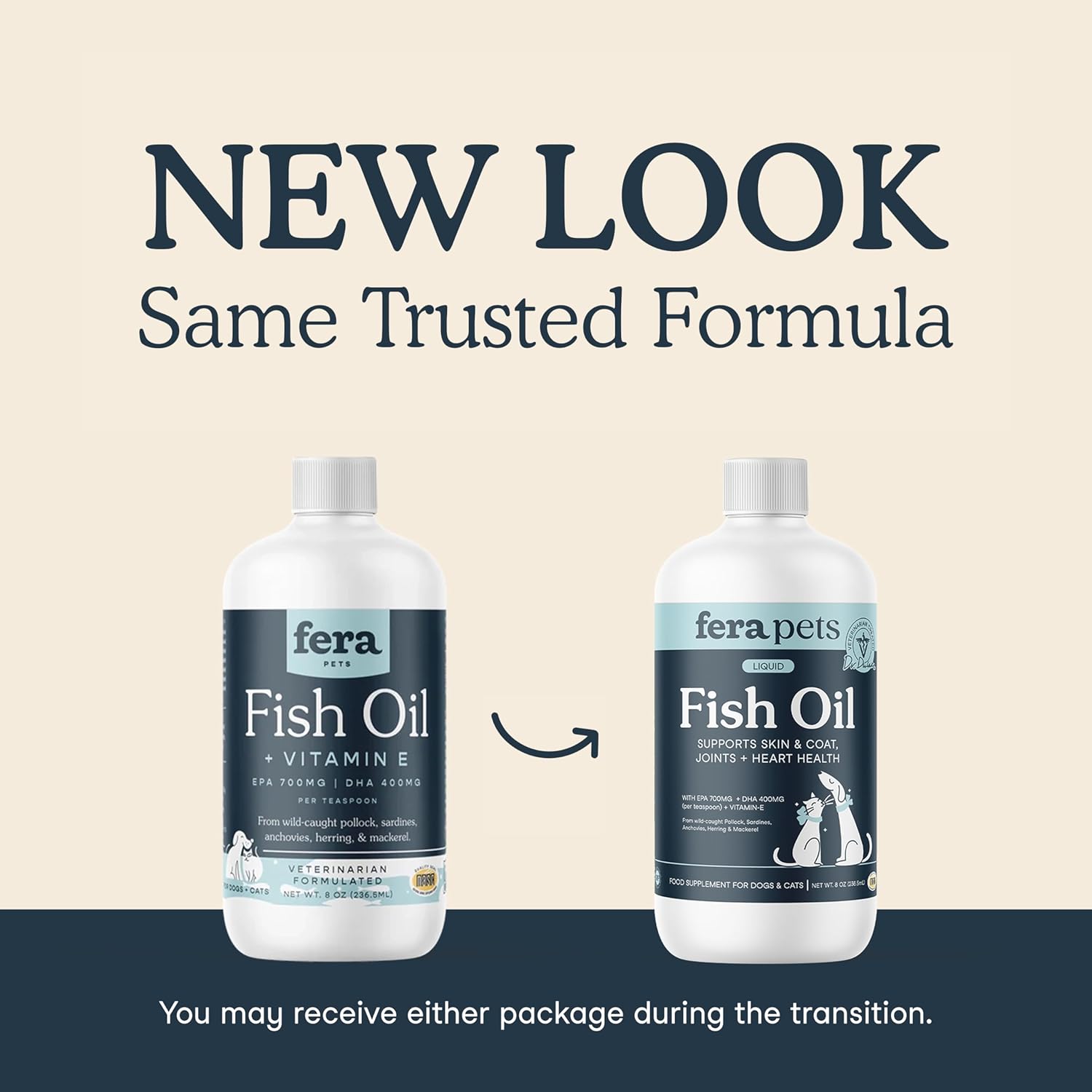 Fera Pets Fish Oil - Omega 3 for Dogs & Cats to Support Joints, Heart, Skin and Coat Health - Non GMO with Vitamin E - 16 oz