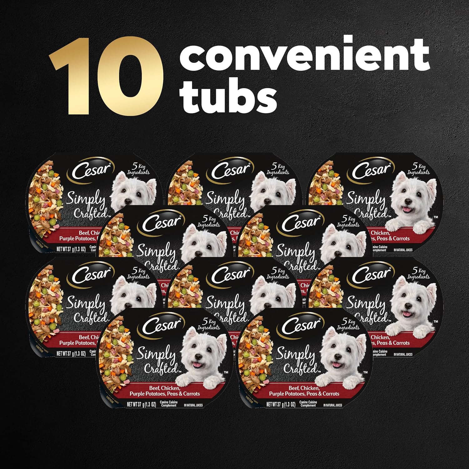 Cesar Simply Crafted Adult Wet Dog Food Meal Topper, Beef, Chicken, Purple Potatoes, Peas & Carrots, 1.3oz. (10 Count, Pack of 1)