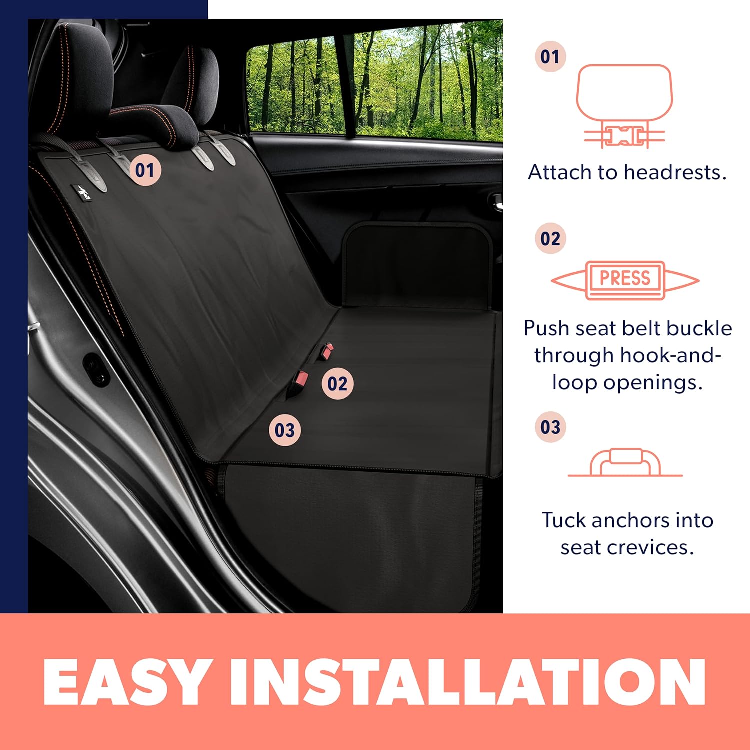 Active Pets Dog Car Seat Cover for Back Seat, Waterproof Pet Hammock Protector, Durable Nonslip Seat Protection SUV Truck, Standard 53"x56", Black