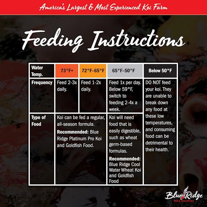 Blue Ridge Koi Fish Food 14lb - Koi Food 3/16” Large and Mini Blend Growth Formula, Goldfish Food, Premium Fish Food for Ponds, Ponds Fish Food, Floating Pond Pellets