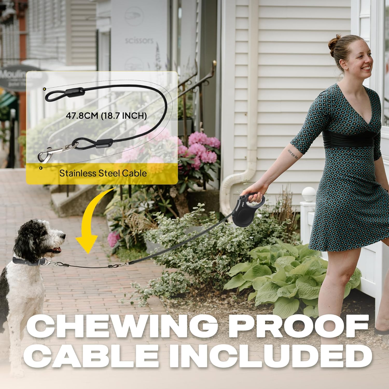 - HEAVY DUTY, DURABLE & STEADY - 16 ft high strength nylon tape with durable rustproof swivel hook and steady impact-resistant ABS material, suitable for large dogs up to 110 lbs. Top durability Internal Coil Spring for Consistent Retraction several years.