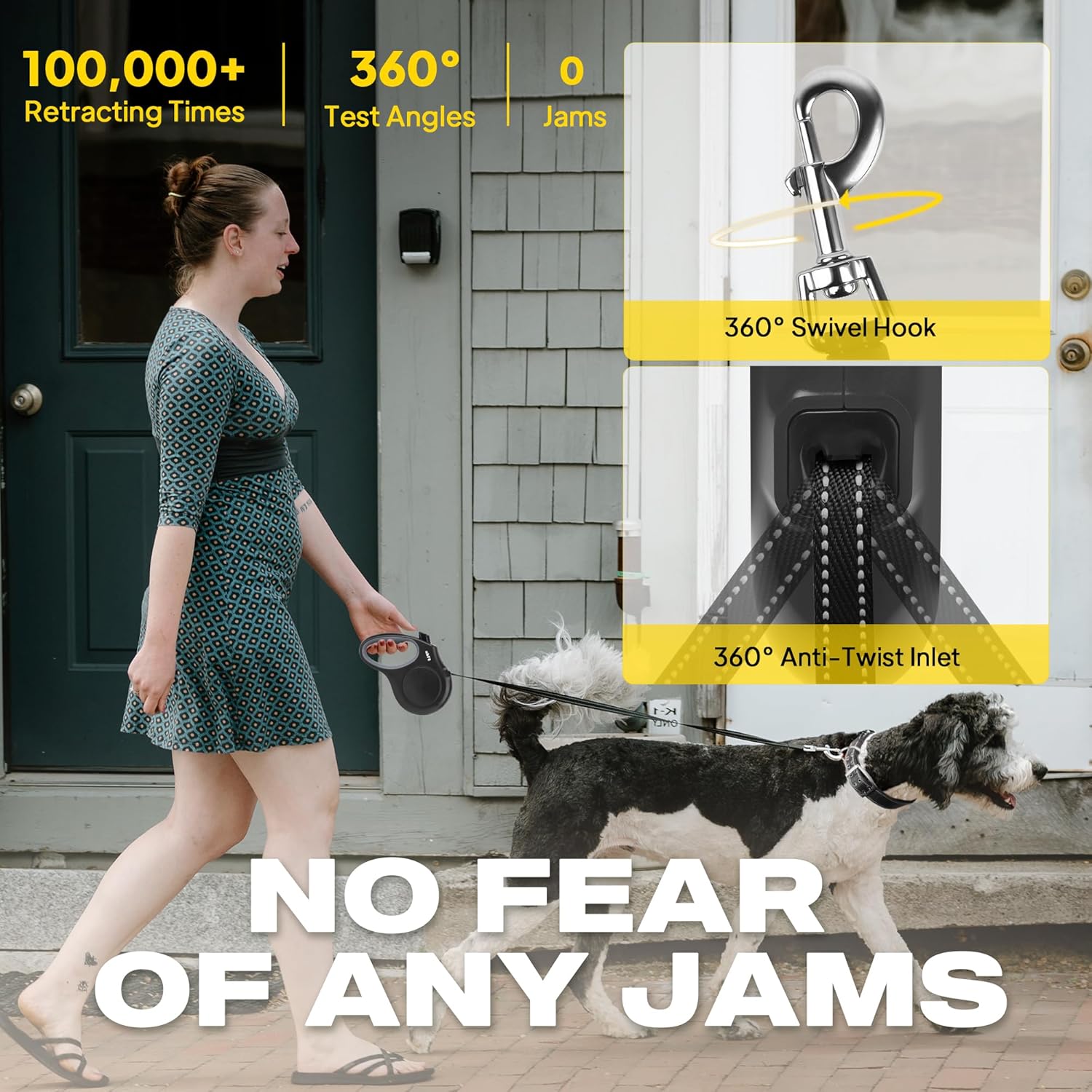 Fida Retractable Dog Leash Large Breed, Heavy Duty 16 ft Dog Walking Leash, up to 110 lbs, 360° Tangle Free, Black