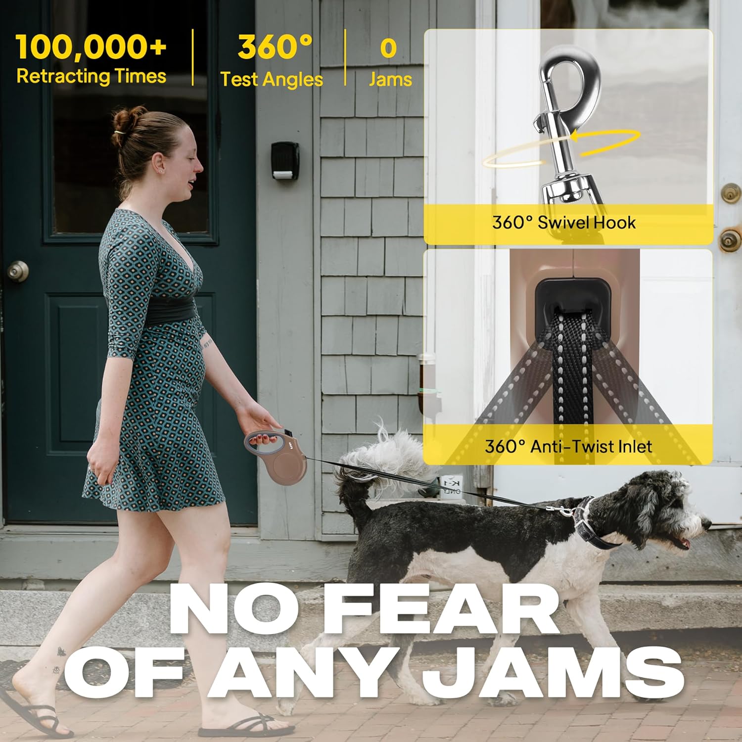 Fida Retractable Dog Leash, 16 ft Dog Walking Leash for Small Dogs up to 26lbs, 360° Tangle Free, Coffee/Brown