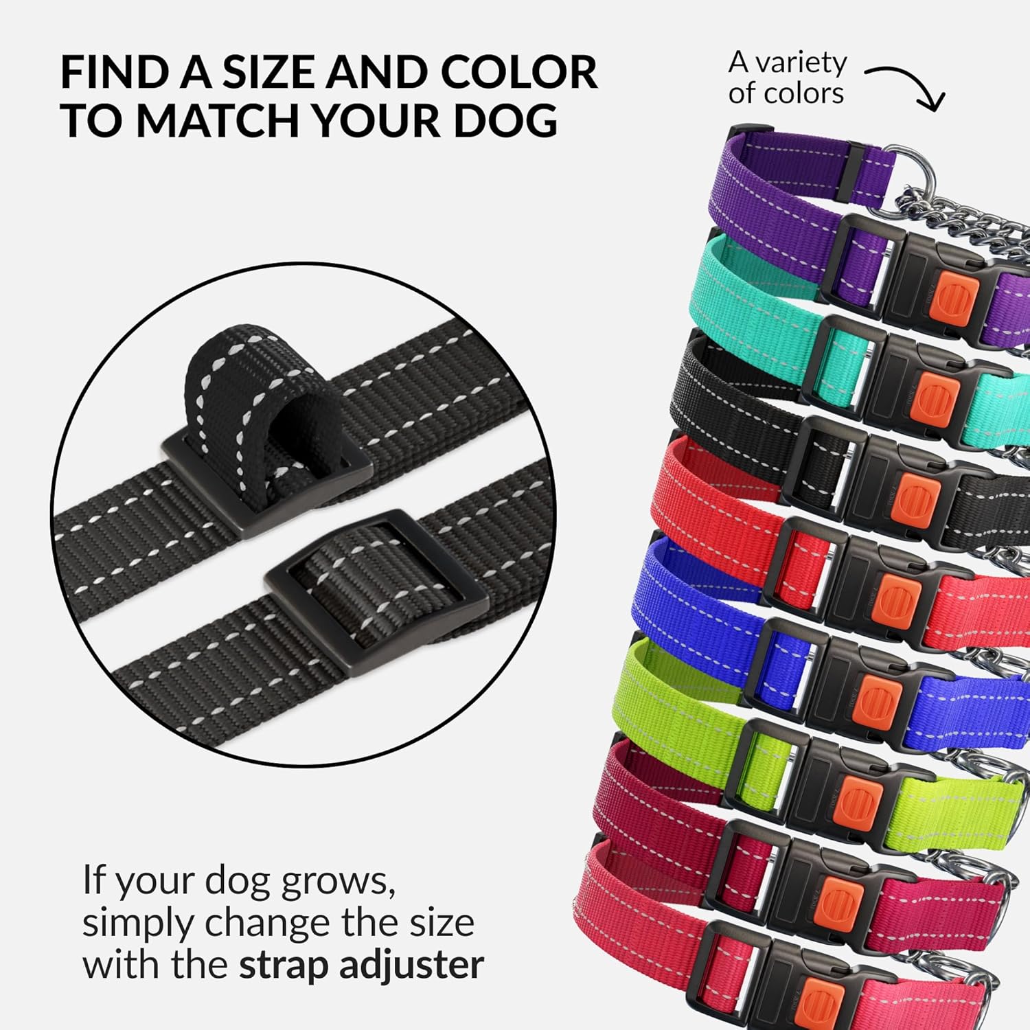 CollarDirect Martingale Dog Collar with Stainless Steel Chain and Quick Release Buckle - Reflective Collar for Large, Medium, Small Dogs - Black, Medium (Neck Size 14"-17")
