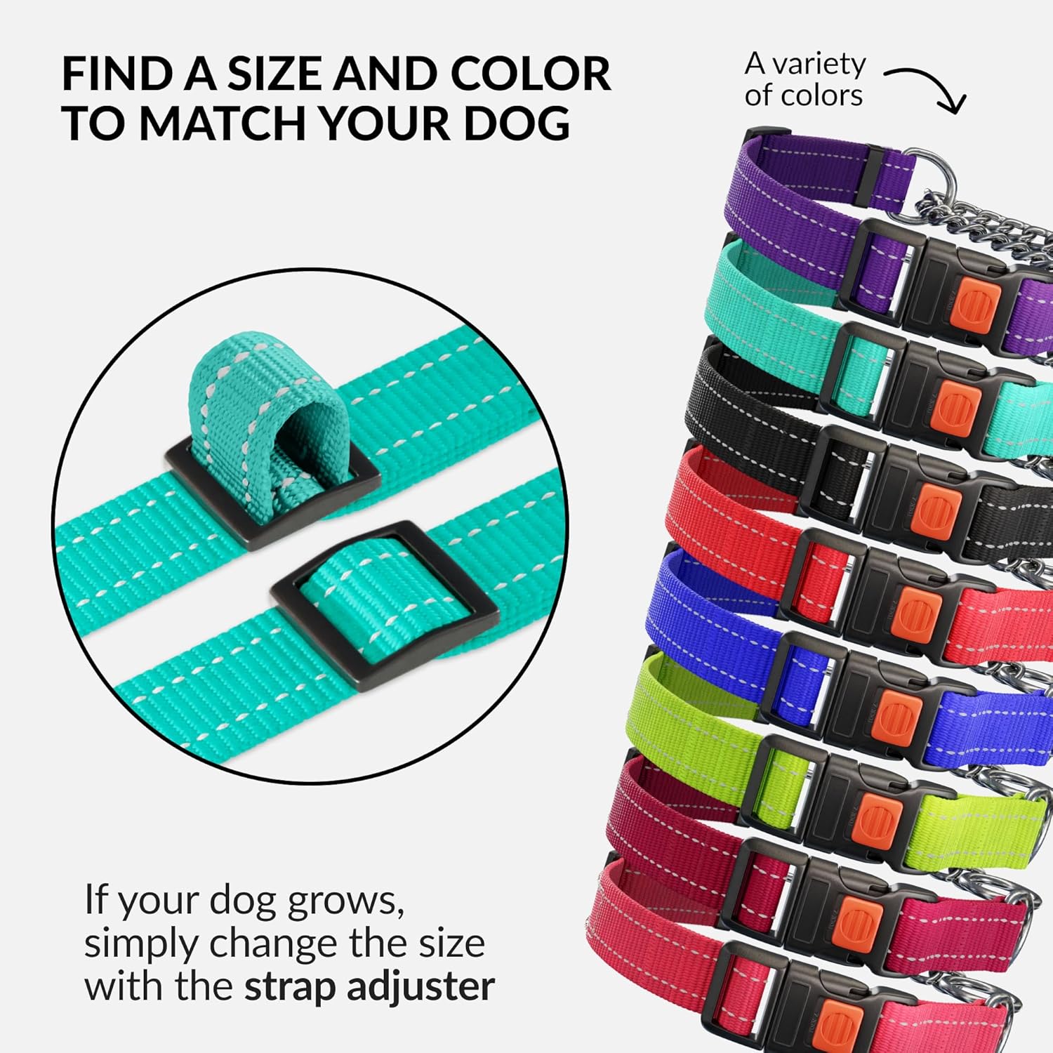 CollarDirect Martingale Dog Collar with Stainless Steel Chain and Quick Release Buckle - Reflective Collar for Large, Medium, Small Dogs - Mint Green, Large (Neck Size 17"-22")