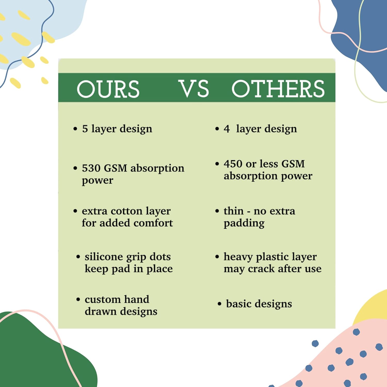 - Highly Absorbent: Our 5 layer washable puppy pads are soft and highly absorbent. Perfect as wee wee pads for dogs, reusable dog training pads, and reusable dog pee pads.