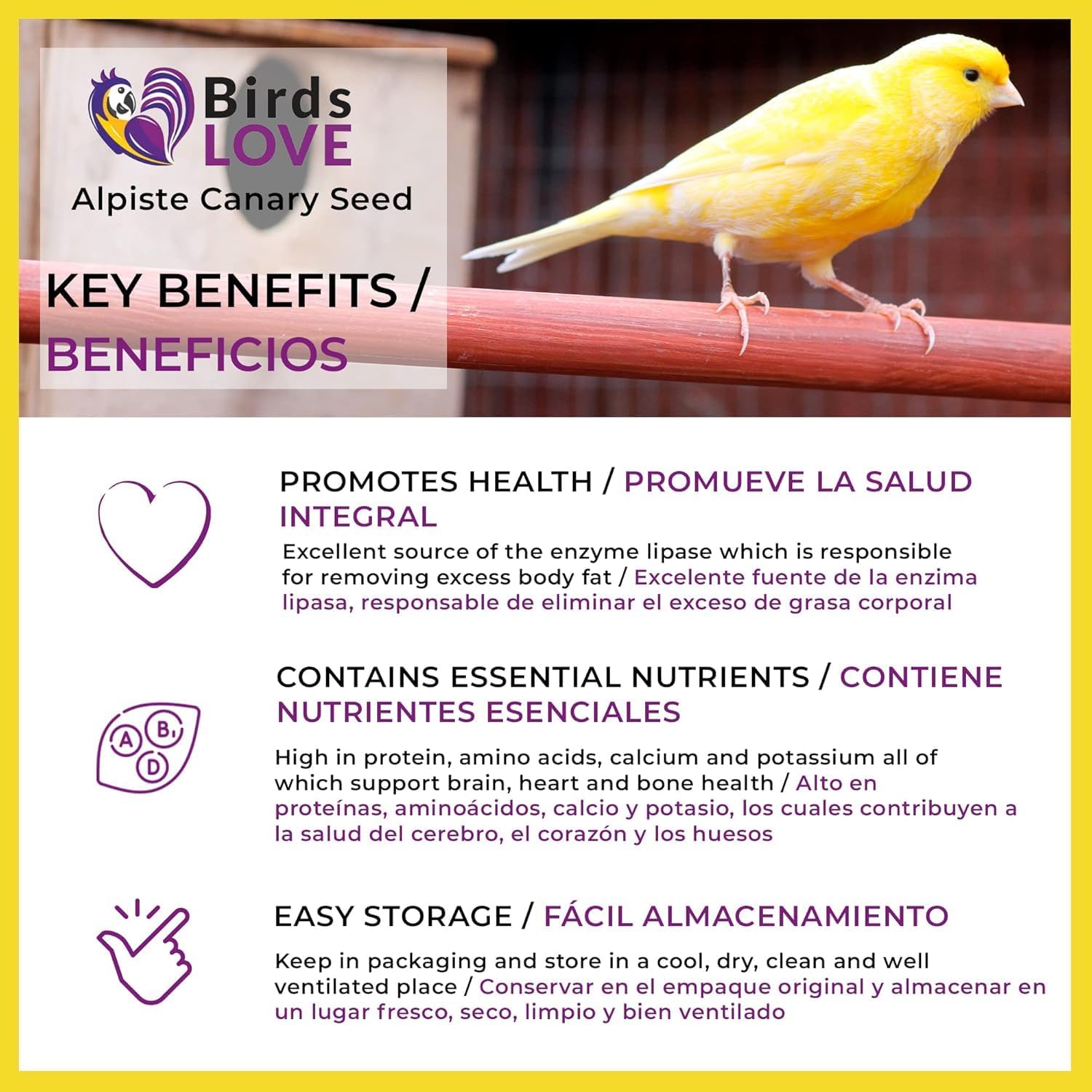 Birds LOVE Alpiste Canary Seed – 100% Pure, Non-GMO, Double Cleaned Food for Canaries, Finches, Budgies & Parakeets – No Additives, Bird Feed, 5 lbs