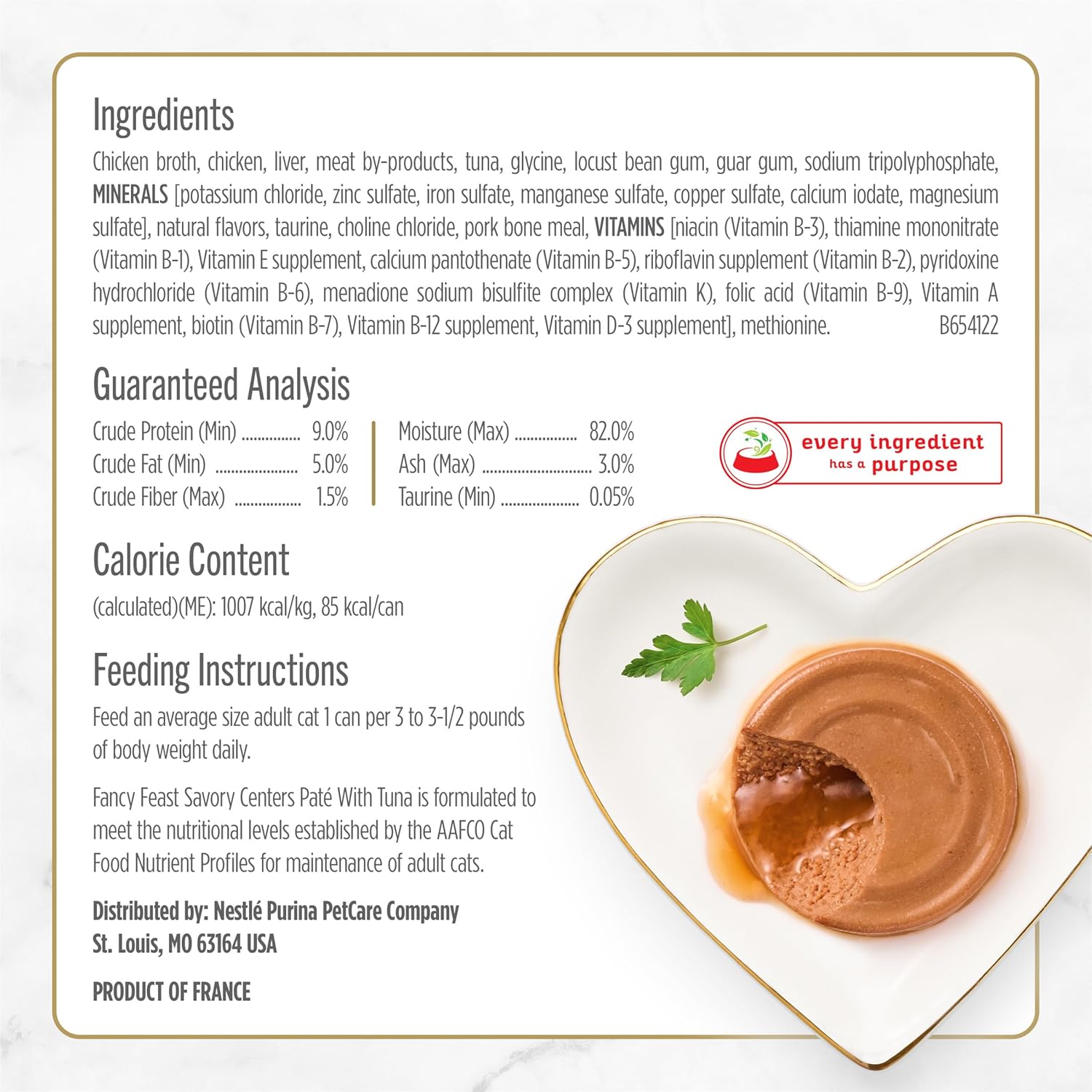 - DELIGHTFUL SURPRISE: Fancy Feast Savory Centers adult cat food offers a surprise gourmet gravy center to delight your cat with a delectable variety of textures.