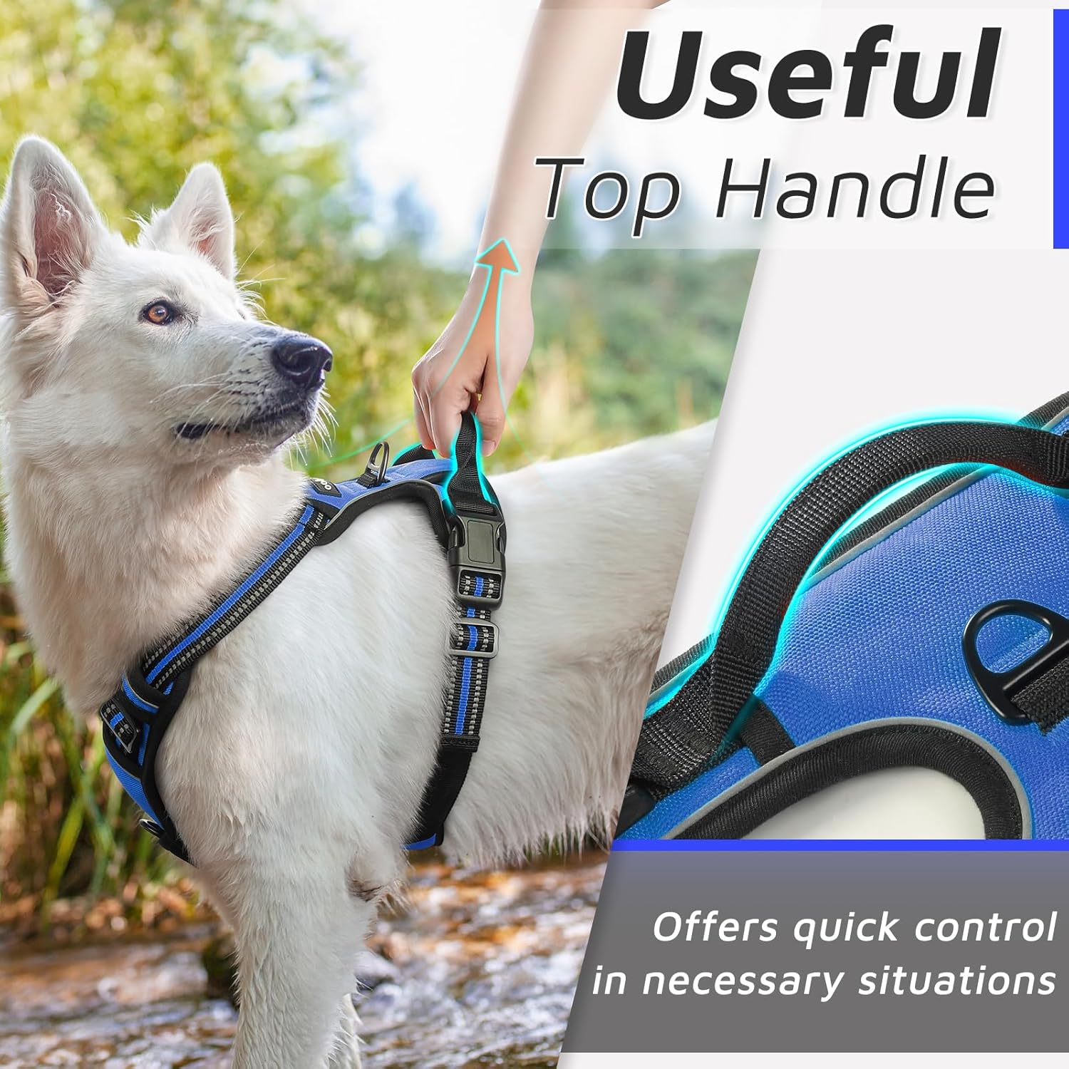 Eagloo Dog Harness Medium Sized Dog, No Pull Service Vest with Reflective Strips and Control Handle, Adjustable and Comfortable for Easy Walking, No Choke Pet Harness with 2 Metal Rings, Blue, M